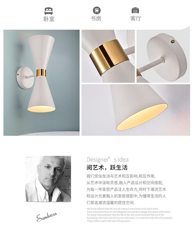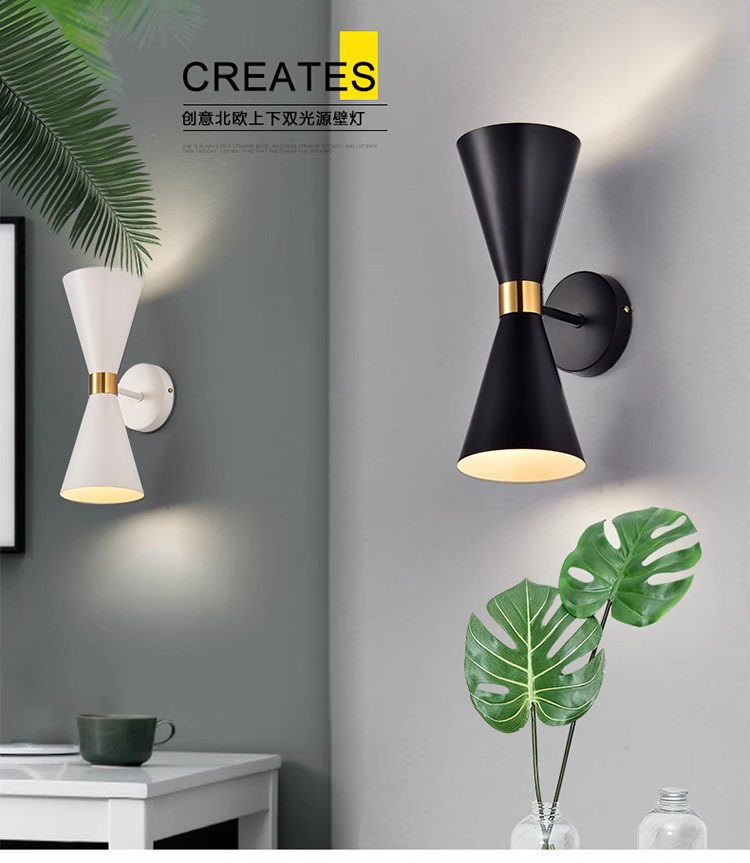 북유럽 램프 산업 스타일 침대 옆 벽 램프 빛 고급 창조적 인 상하 컵 침실 현대 간단한 복도 멀리 벽 램프스토어 가기