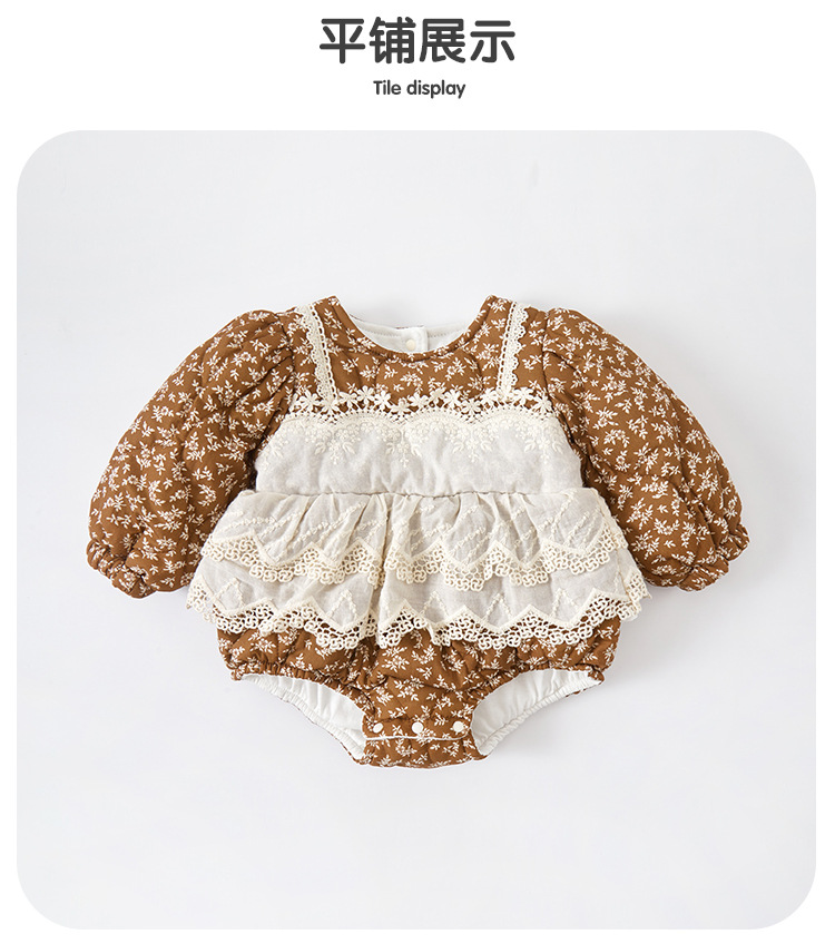 2024년 여아 겨울옷, 기모 안감 누빔 아기 바디슈트, 100일/1세 아기들을 위한 세련된 꽃무늬 누빔 겨울옷
