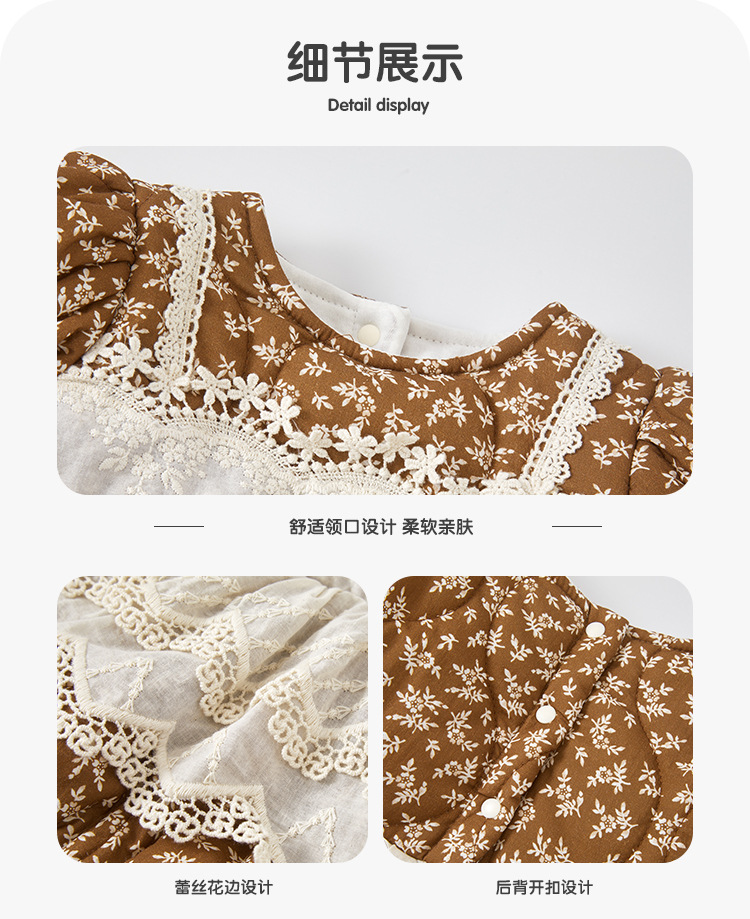 2024년 여아 겨울옷, 기모 안감 누빔 아기 바디슈트, 100일/1세 아기들을 위한 세련된 꽃무늬 누빔 겨울옷스토어 가기