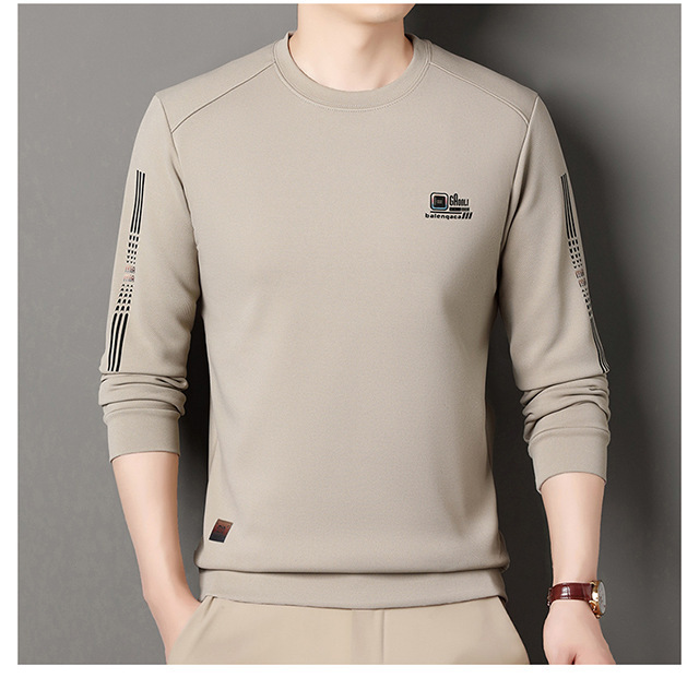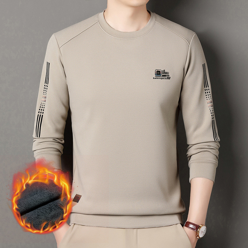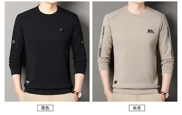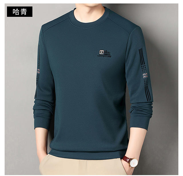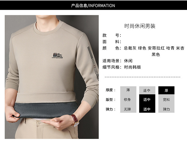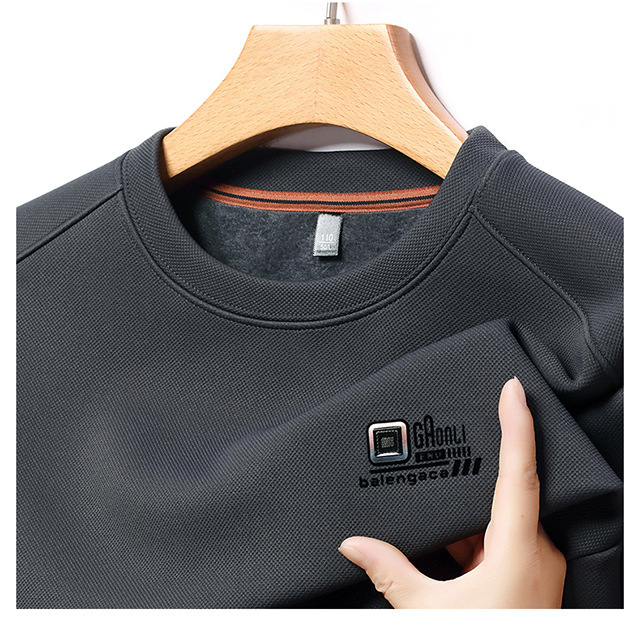 가을과 겨울 새로운 기모 두꺼운 무거운 공예 남성 스웨터 패션 트렌드 둥근 목 티셔츠베이스 셔츠 세대