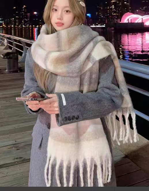 겨울 컬러 스트라이프 캐시미어 마일라드 스카프 여자 신형 한국 스타일 올매치 두꺼운 겨울 봉제 따뜻한 스카프스토어 가기