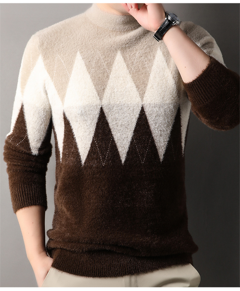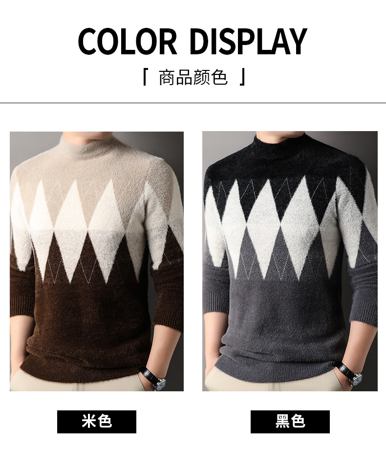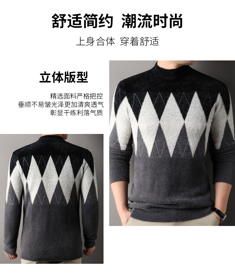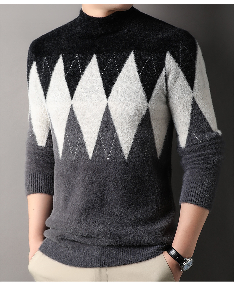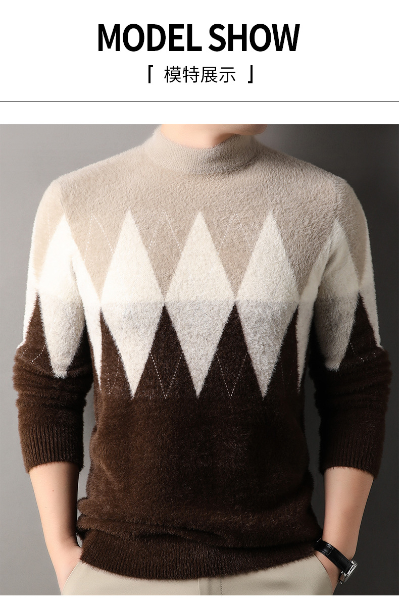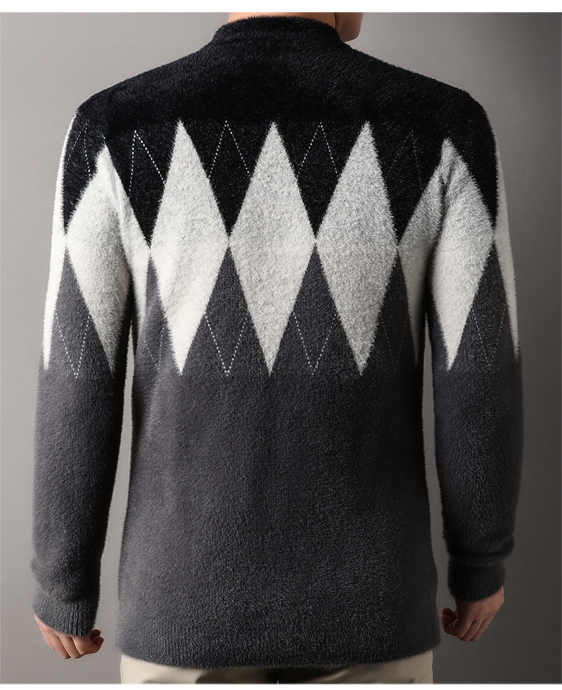 국경 간 도매 중년 남성 페렛 캐시미어 스웨터 느슨한 캐주얼 가을 및 겨울 마름모 두꺼운 니트베이스 셔츠스토어 가기