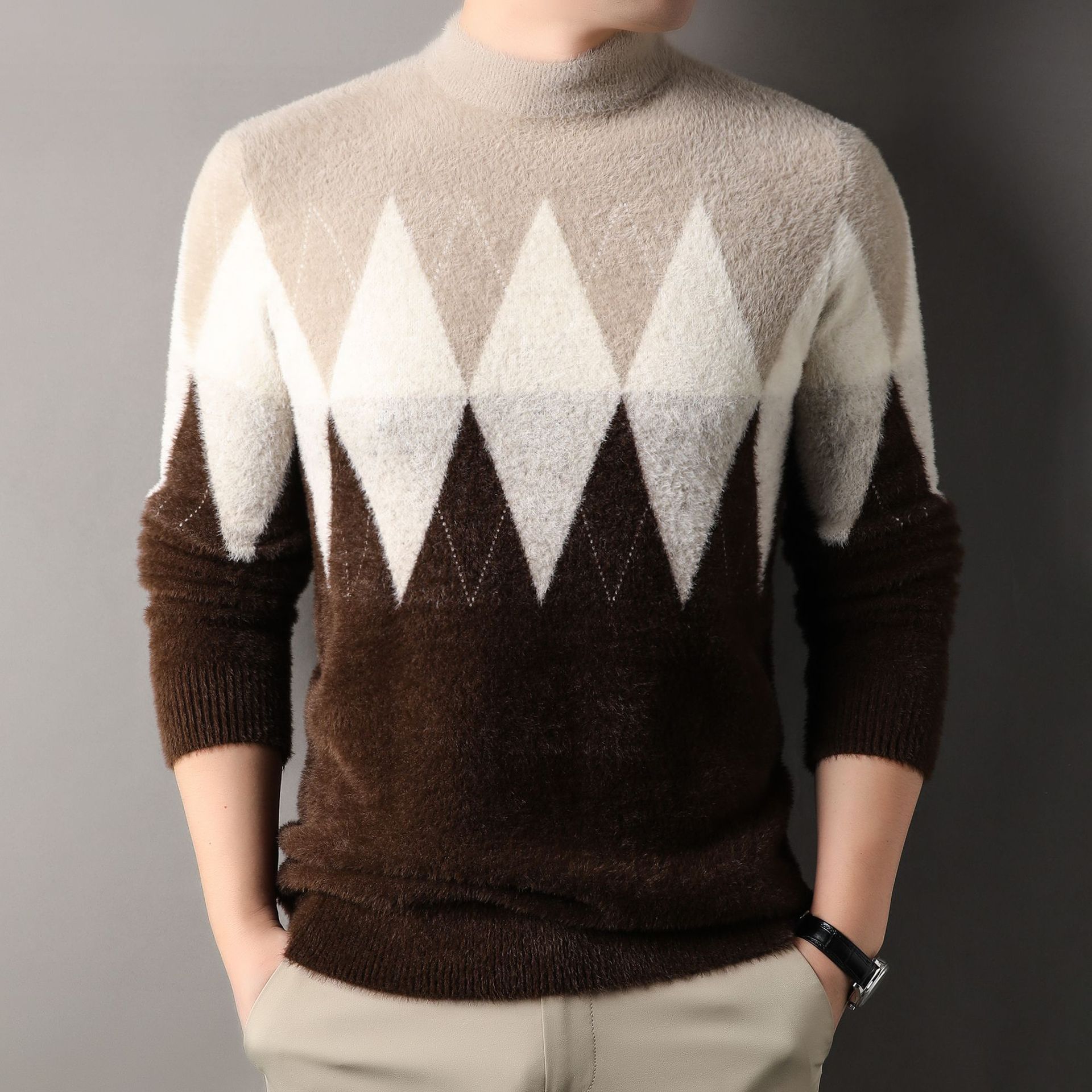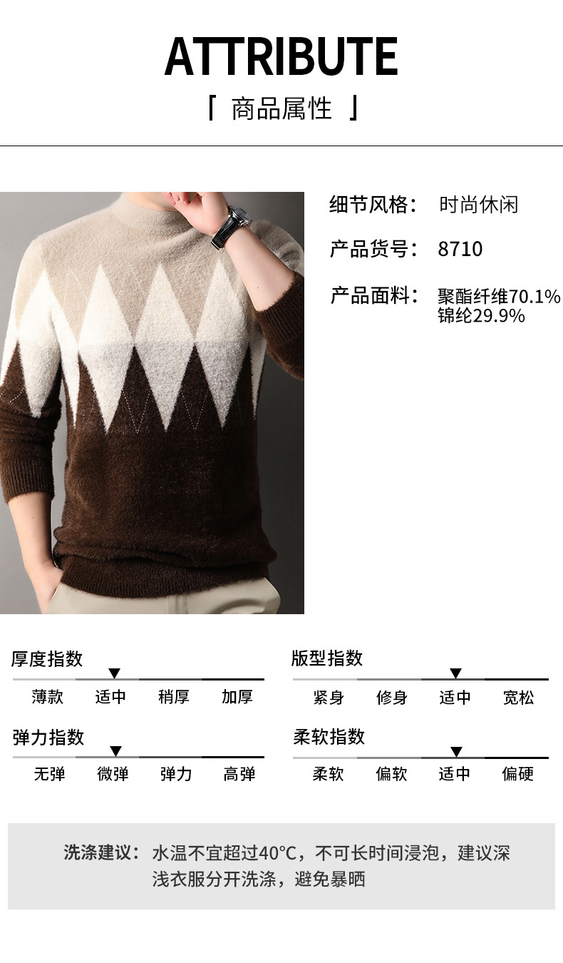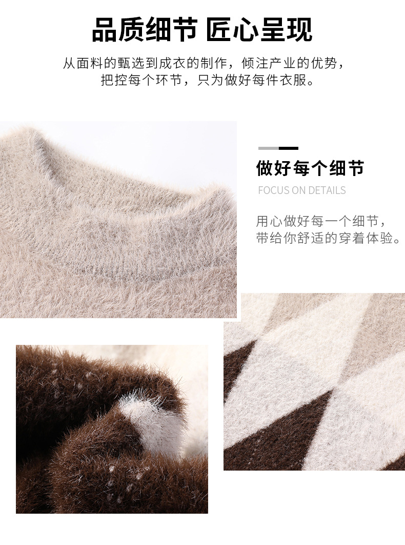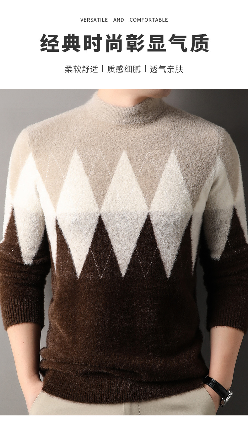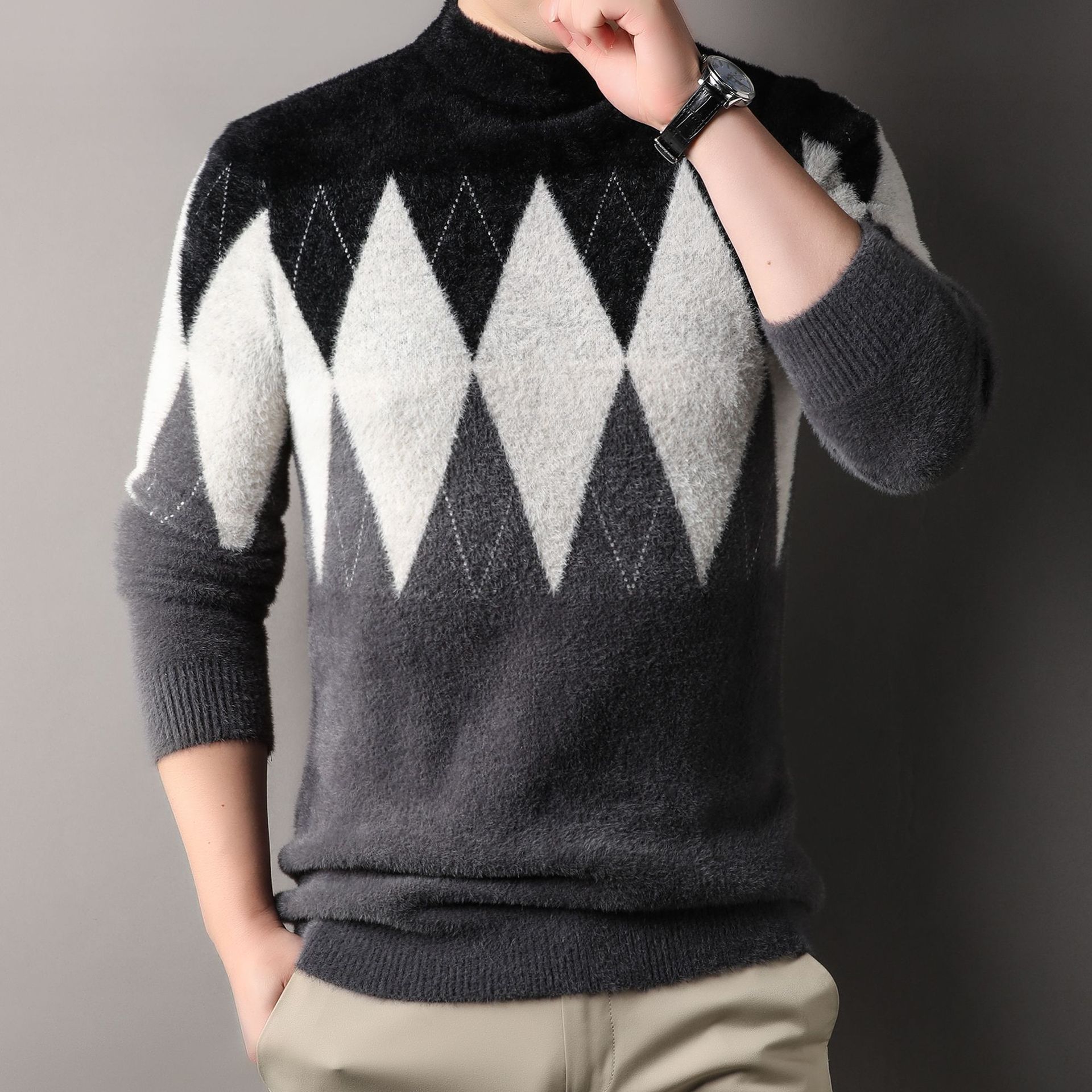 국경 간 도매 중년 남성 페렛 캐시미어 스웨터 느슨한 캐주얼 가을 및 겨울 마름모 두꺼운 니트베이스 셔츠스토어 가기