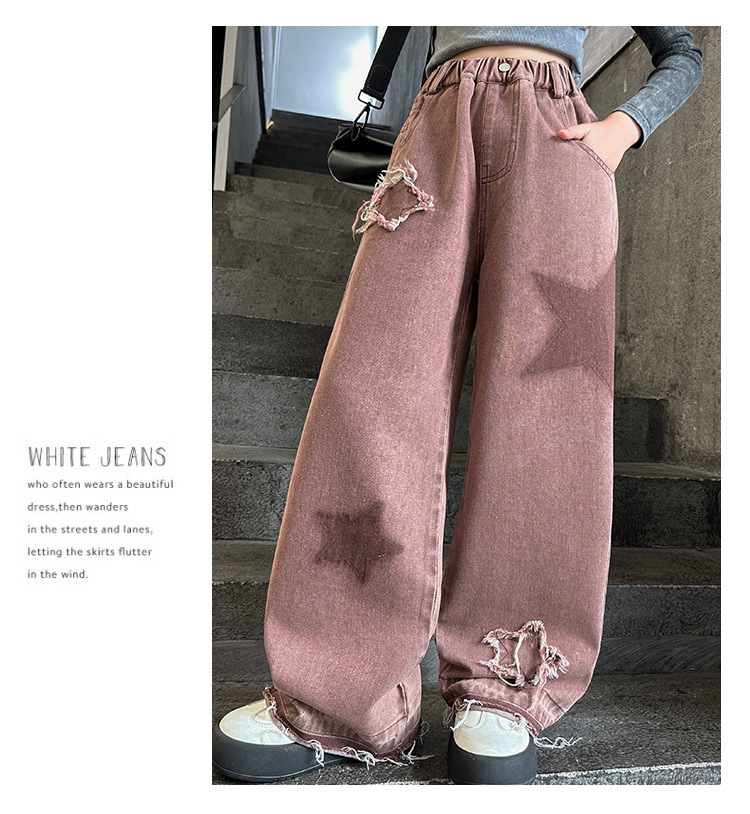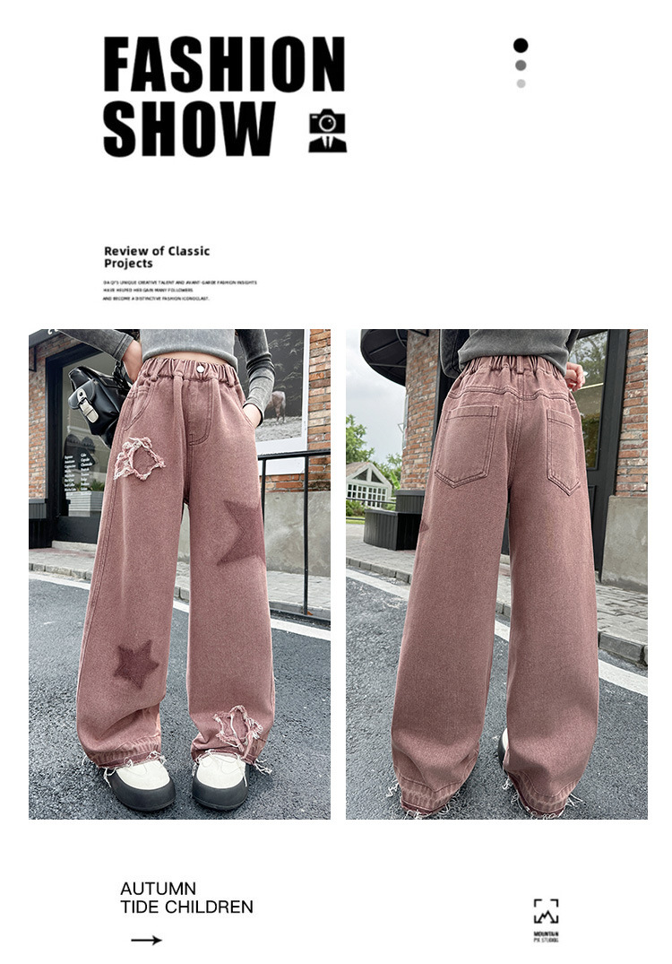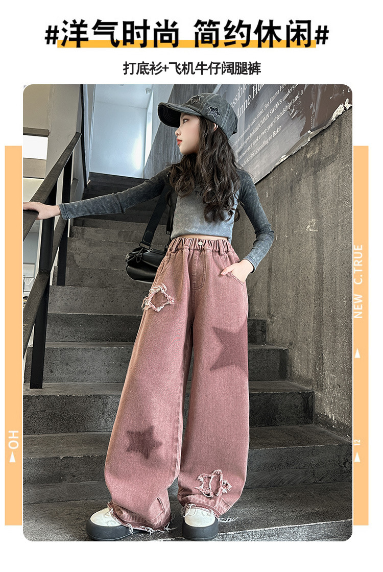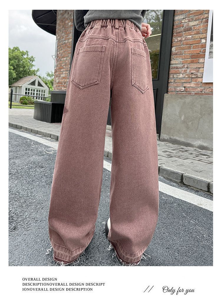 소녀 기모 청바지 2024 새로운 가을과 겨울 착용 어린이 두꺼운 스트레이트 팬츠 소녀 한국식 와이드 레그 팬츠 트렌디스토어 가기