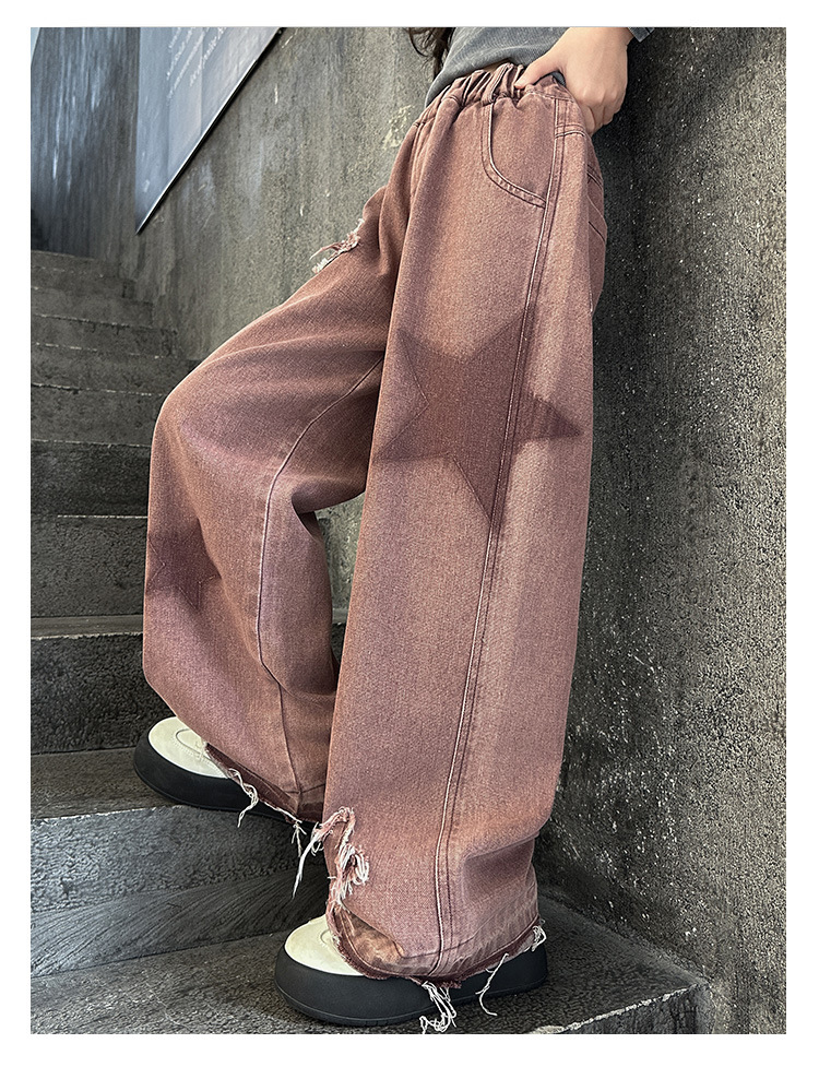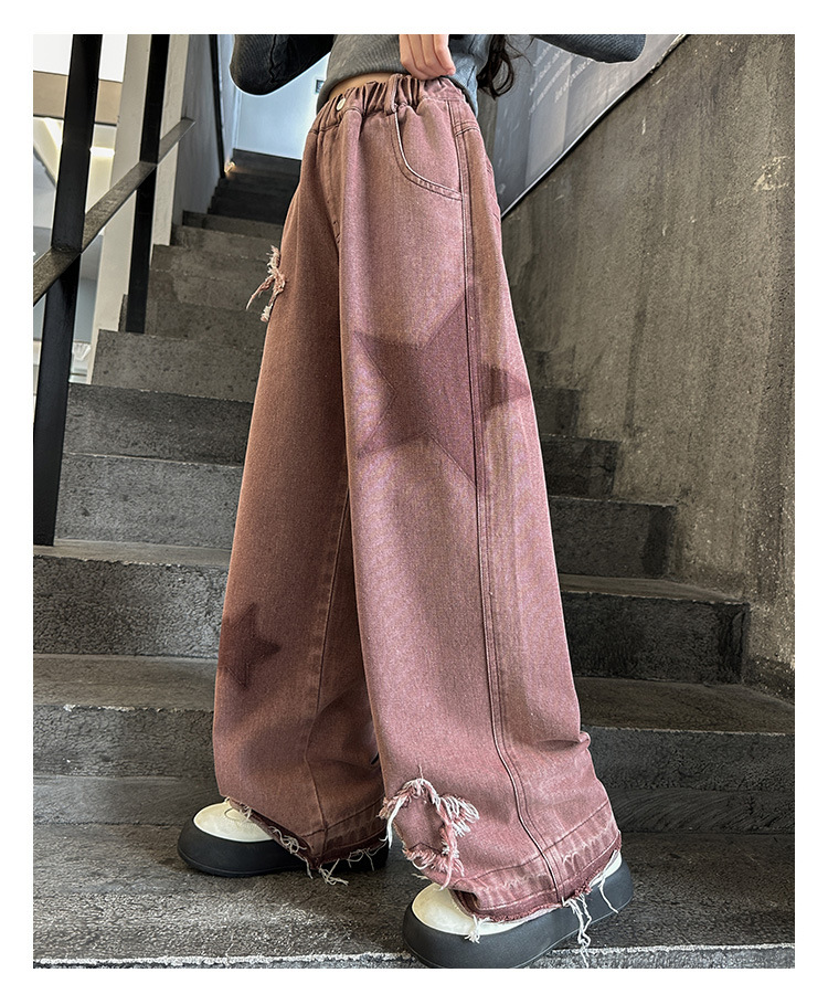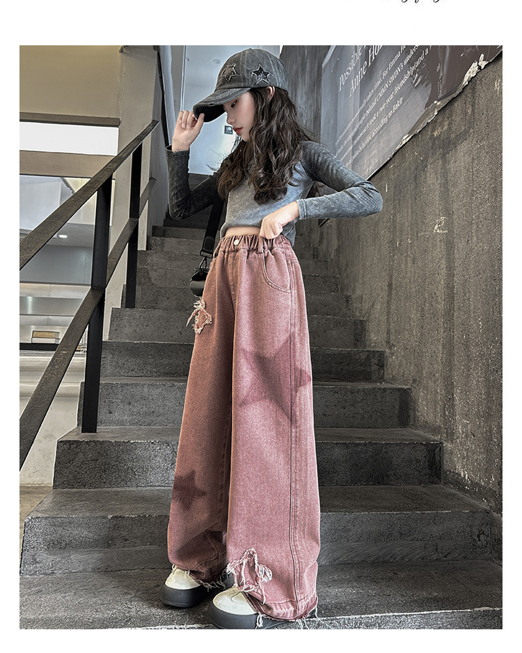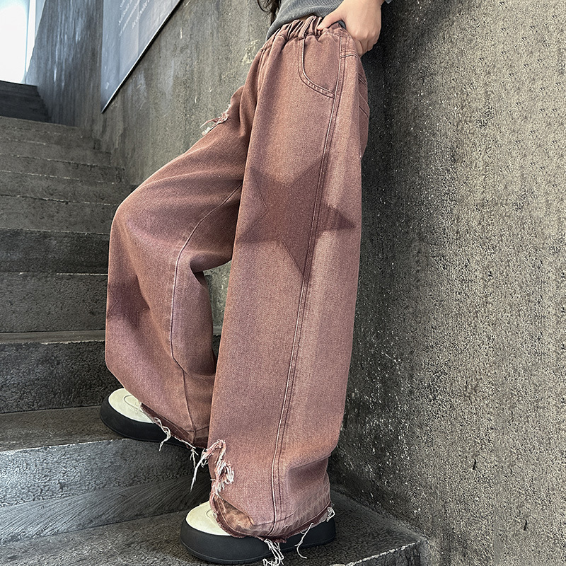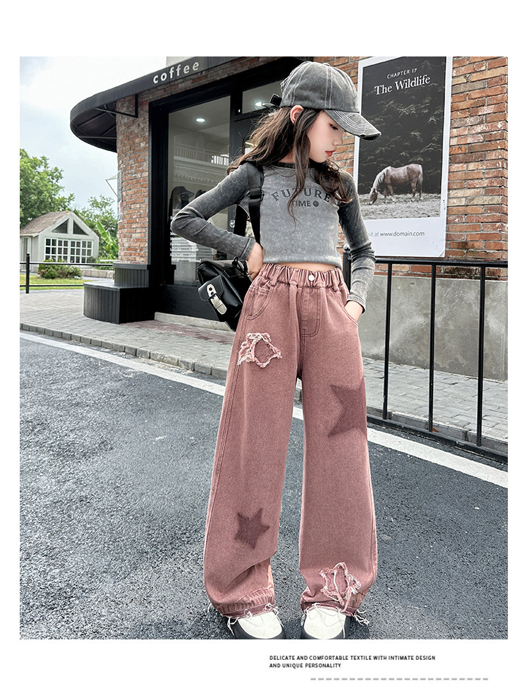 소녀 기모 청바지 2024 새로운 가을과 겨울 착용 어린이 두꺼운 스트레이트 팬츠 소녀 한국식 와이드 레그 팬츠 트렌디스토어 가기