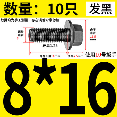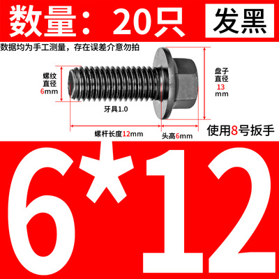 패드 등급 10.9 외부 육각형 플랜지 볼트 M6M8M10 이있는 톱니 모양의 확대 SCREW가 장착 된 블랙 플랜지 볼트