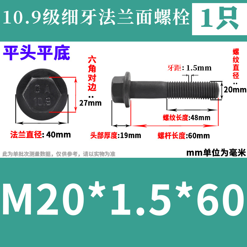• M20*1.5*60(플랫 헤드와 플랫 헤드 1개