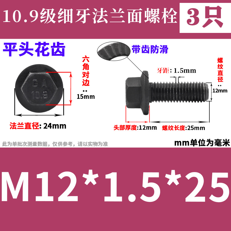 • M12*1.5*25(플랫 헤드 꽃 이빨 3개)