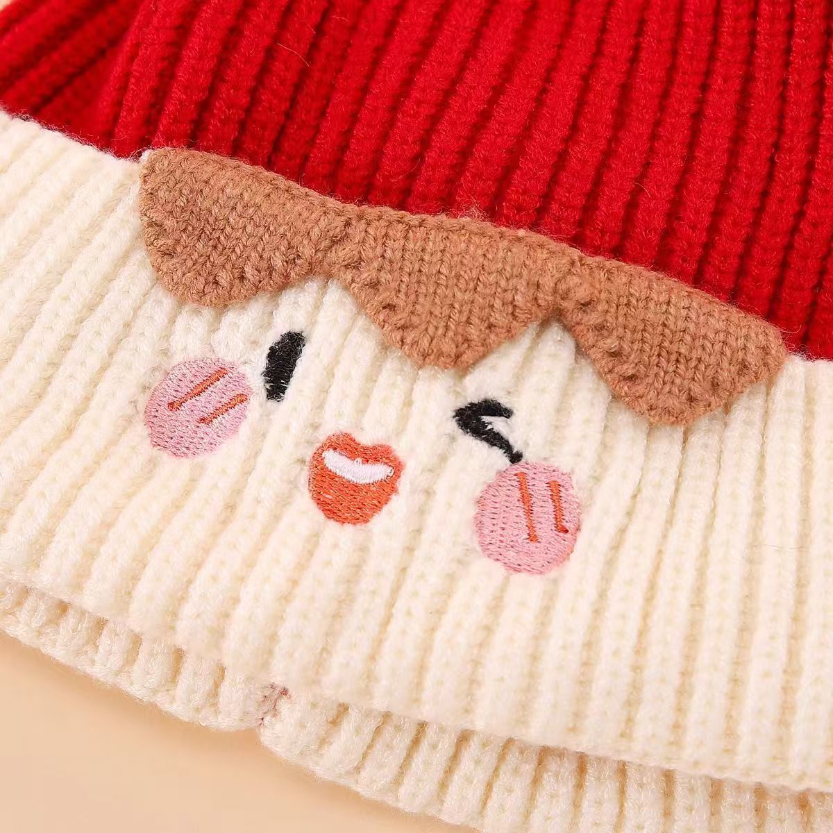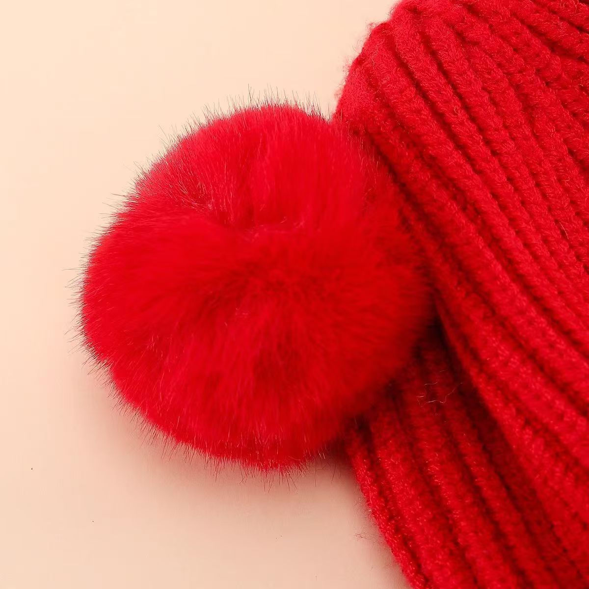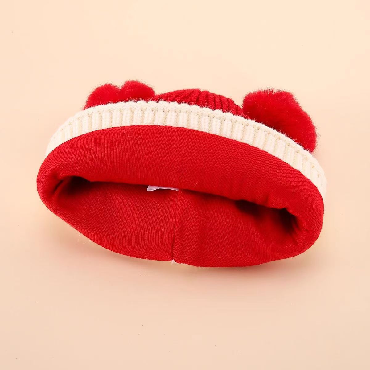 2024 새로운 겨울 어린이 모직 모자 슈퍼 귀여운 앞머리 아기 모자 색상 일치하는 더블 볼 니트 귀 보호 어린이 모자
