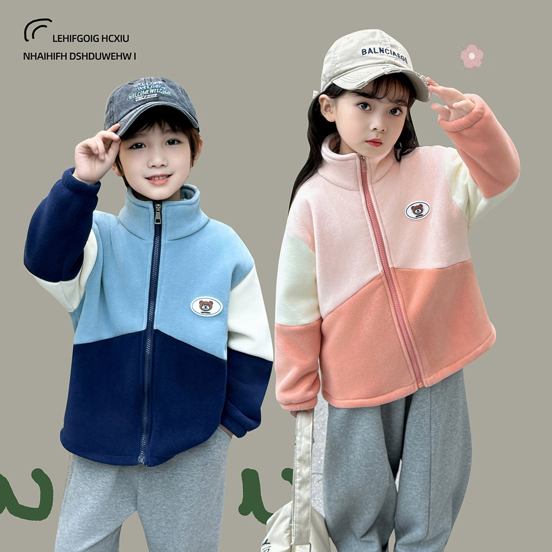 어린이 올리 벨벳 두꺼운 코트 어린이 기모 스웨터 소년과 소녀 카디건 칼라 가을과 겨울 캐주얼 탑
