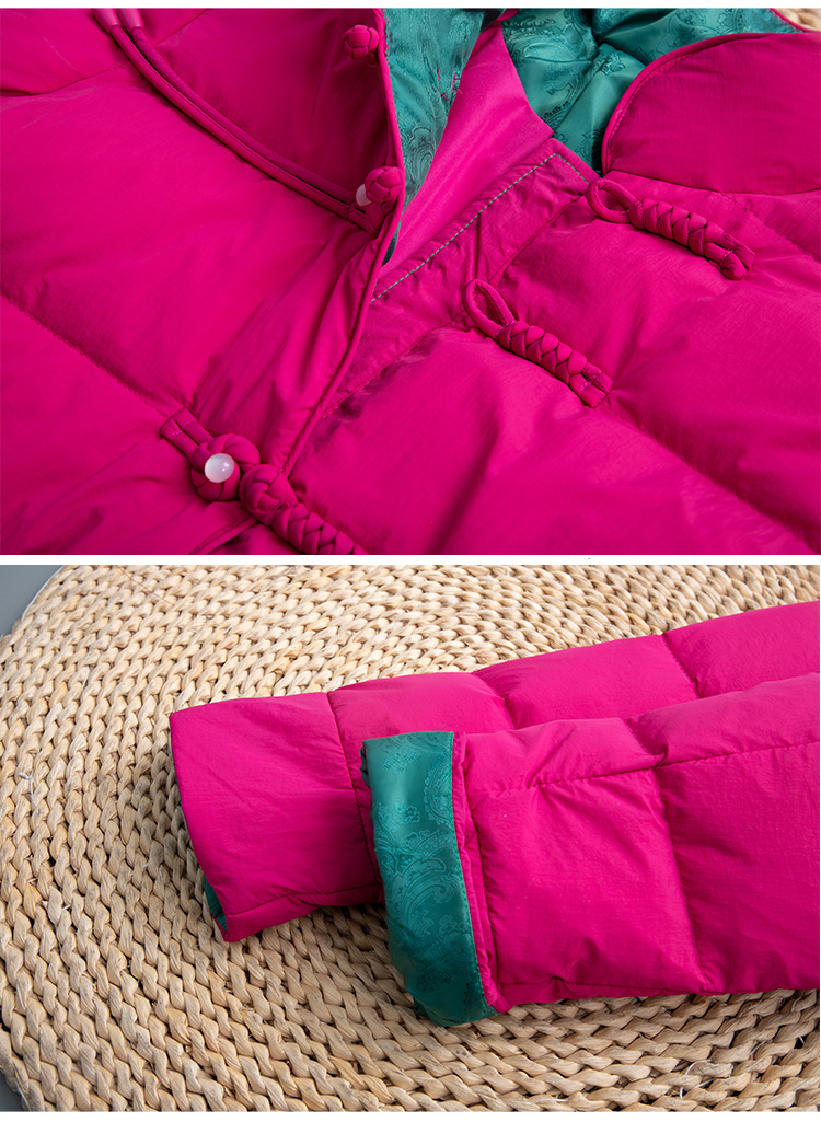빈티지 예술적 겨울 짧은 민족 스타일 디스크 버클 자수 흰색 오리 다운 재킷 느슨한 따뜻한 유행 재킷스토어 가기