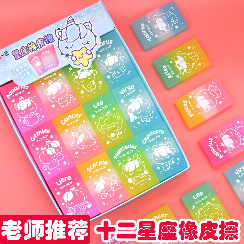 12 개의 별자리 지우개 삼색 무지개 투명한 젤리 지우개 깨끗이 덜 긁히고 추적없는 어린이 학생 Lei Hong