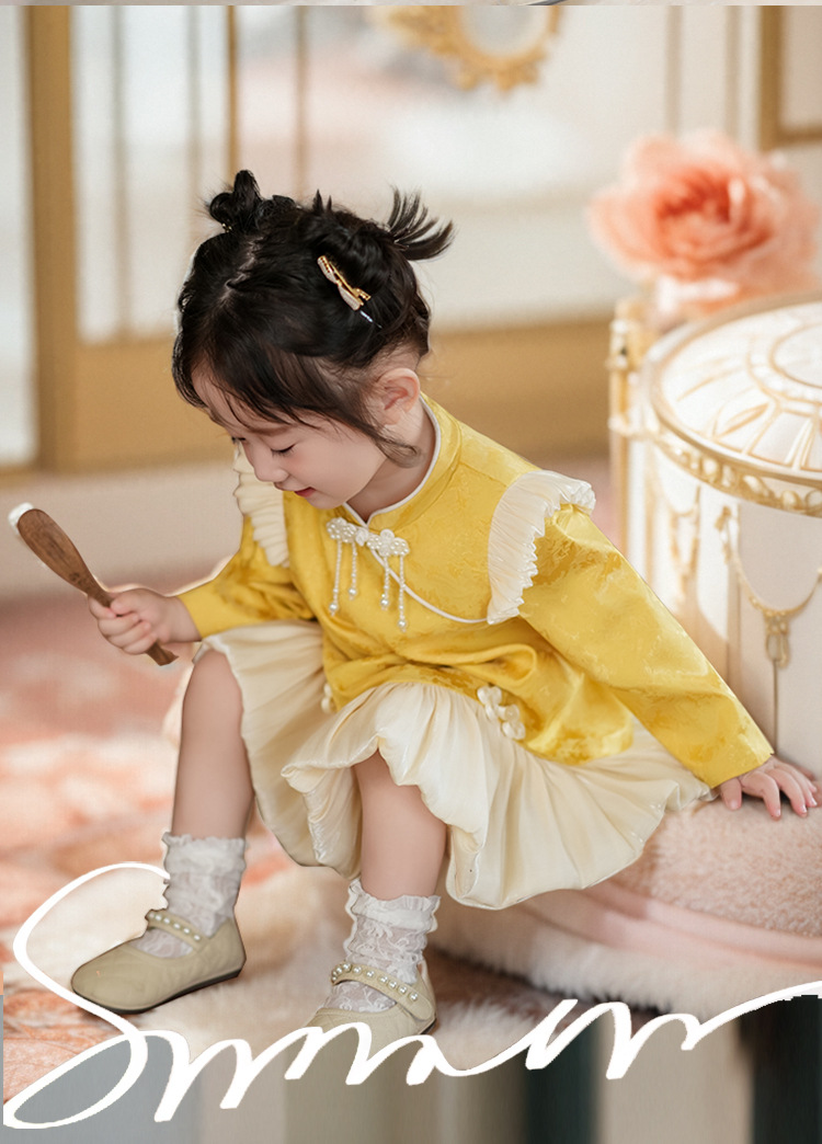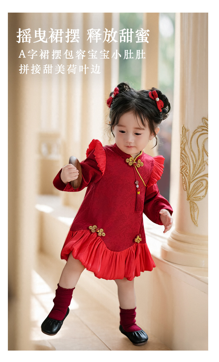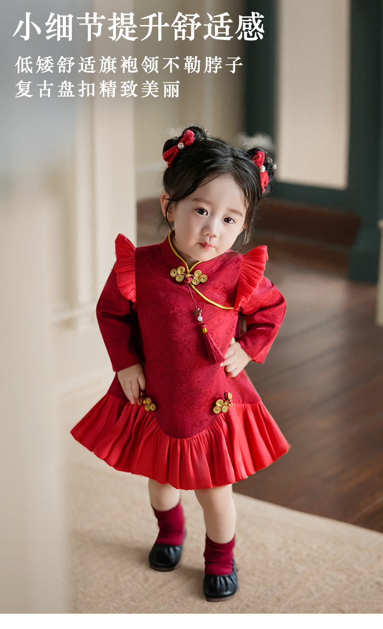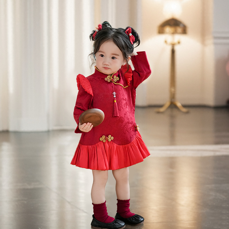 1 년 된 소녀 원피스 가을 · 겨울 설날 원피스 기모 짙어진 붉은 아기 청삼 중국 설날 소녀 원피스