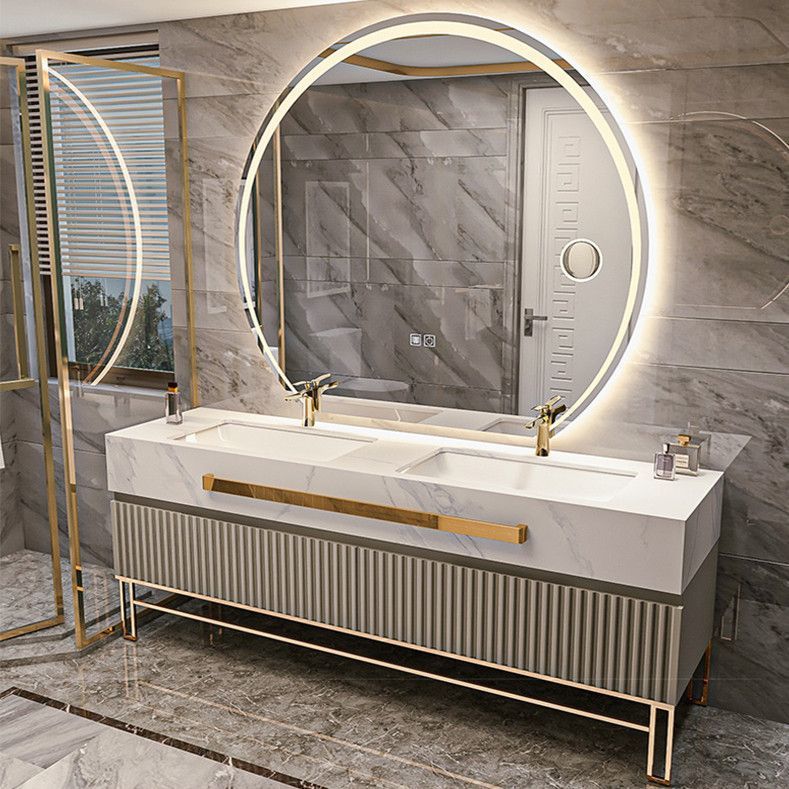 록 보드 올인원 분지 욕실 캐비닛 조합 라이트 럭셔리 오크 화장실 지능형 더블 세척 테이블 세면대 떨어지는 빨간색스토어 가기