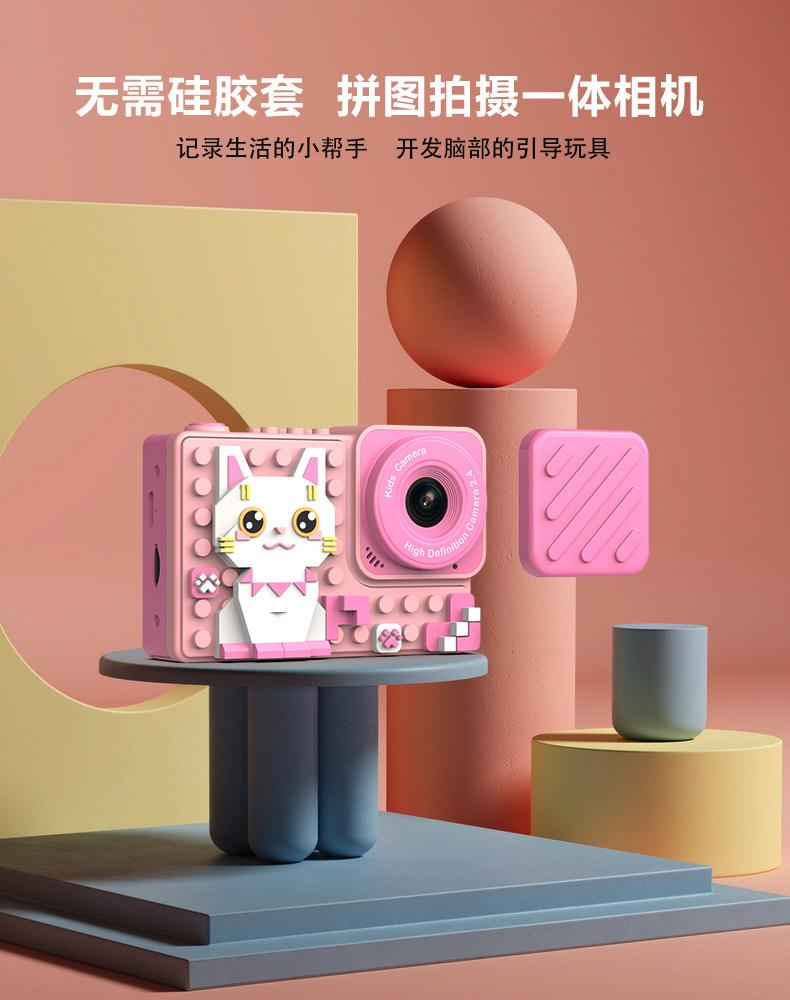 국경을 넘는 어린이용 블록 카메라 미니 듀얼 카메라 학생용 카메라 교육용 장난감 듀얼 카메라 미니 카메라스토어 가기