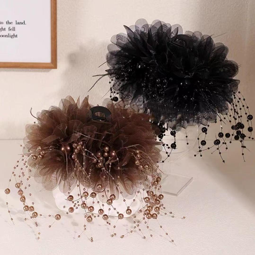 인터넷 연예인 모란 2024 가을과 겨울 새로운 구슬 깃털 술 잡아 클립 고급 가벼운 럭셔리 상어 클립 올 매치 헤어 액세서리