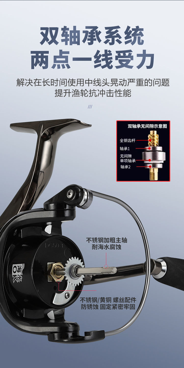 • 해수 방지 22축 풀 메탈 더블 베어링(틈 없음) - 1000 시리즈