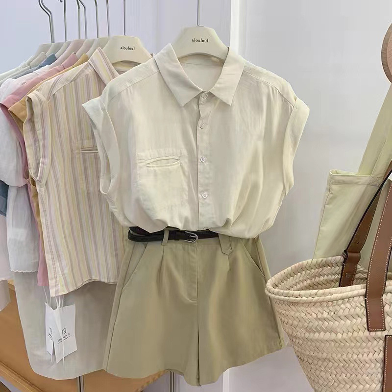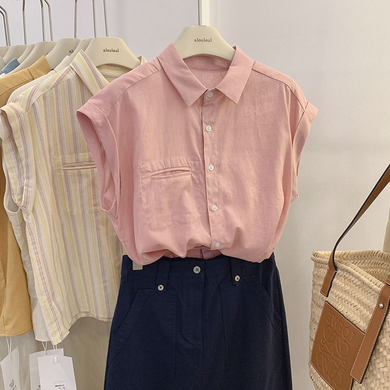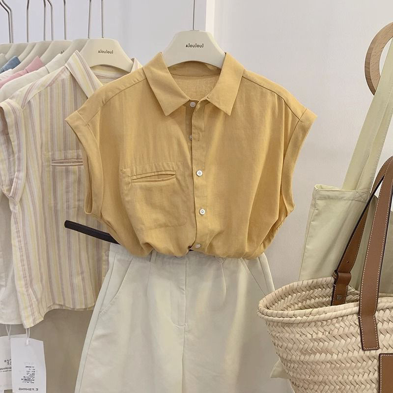 대외 무역 통관 ~ 꼬리 용품 브랜드 옷깃 올매치 셔츠 여자 여름 대학 스타일 느슨한 슬림 셔츠 작은 비행 소매스토어 가기