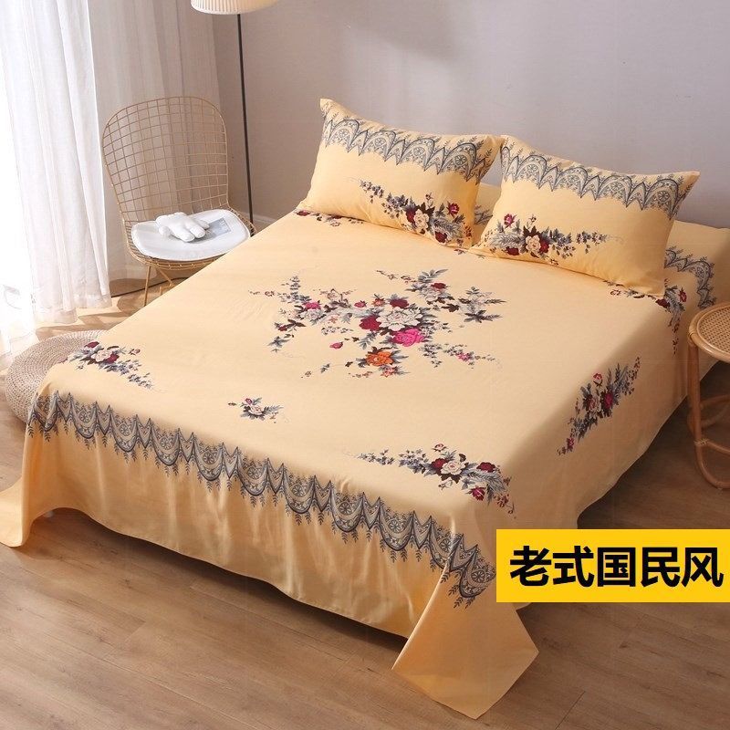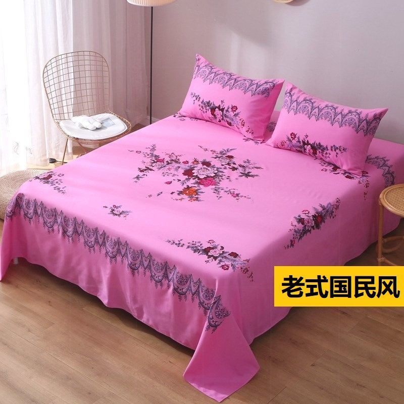 옛날 모란풍 상하이풍 침대 시트, 향수를 불러일으키는 민족풍 기모 4피스 이불커버, 큰 꽃무늬 학생 서레이홍스토어 가기
