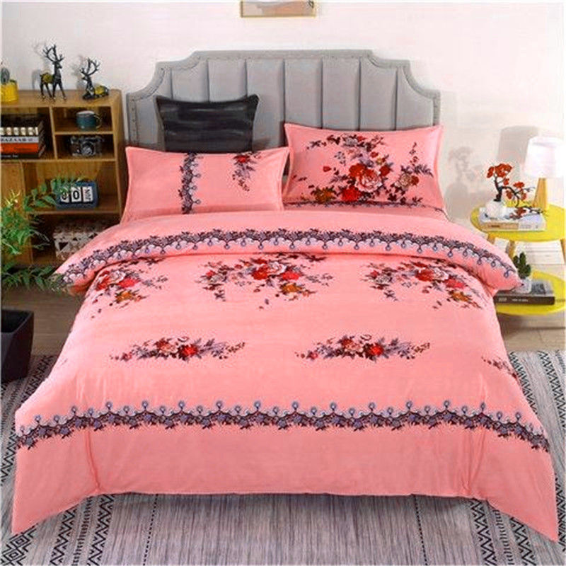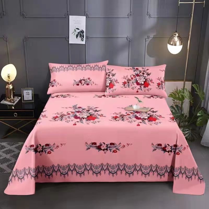 옛날 모란풍 상하이풍 침대 시트, 향수를 불러일으키는 민족풍 기모 4피스 이불커버, 큰 꽃무늬 학생 서레이홍
