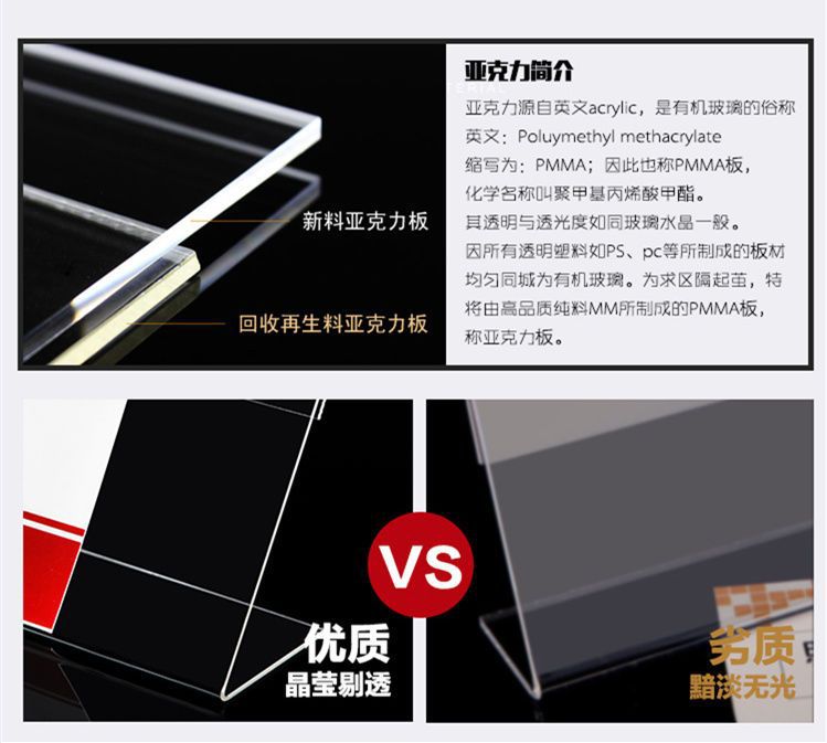 가격 브랜드 수직 아크릴 L 자형 카드 테이블 카드 A5 투명 디스플레이 스탠드 빌보드 사인 레이 레드를 설정할 수 있습니다