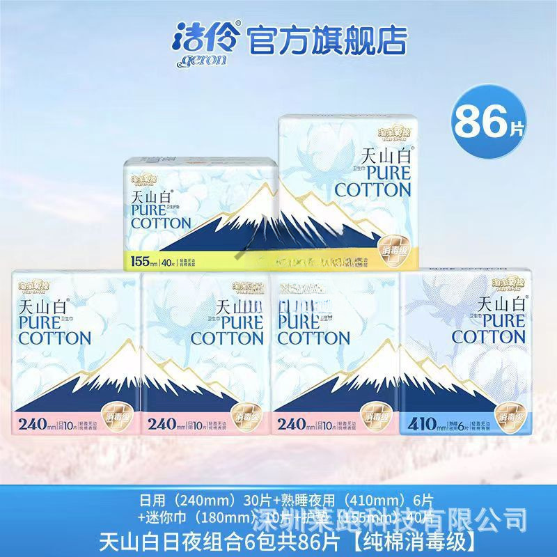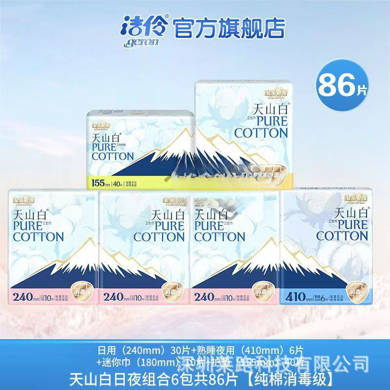 Jie Ling Tao 산소 면 Tianshan 흰색 위생 냅킨 순면 조합 매일 사용 및 야간 사용을위한 상쾌한 살균 등급 작은 남자 허리 바지스토어 가기