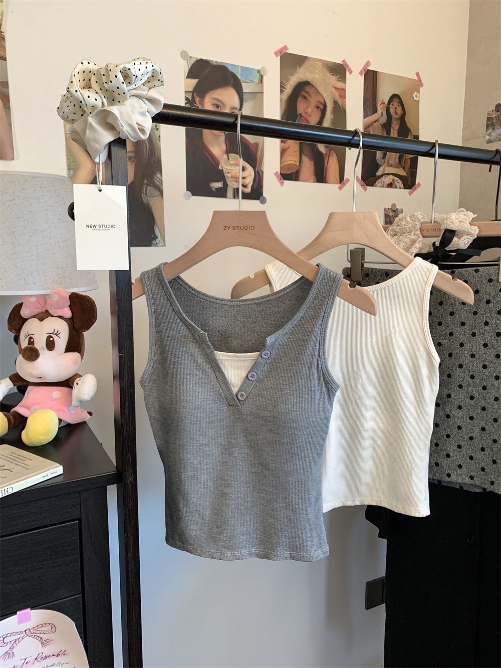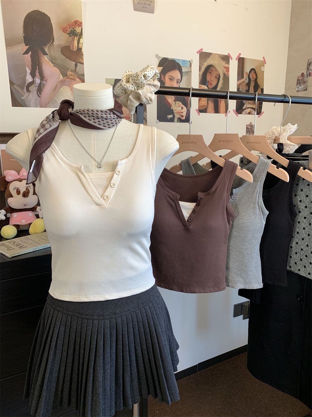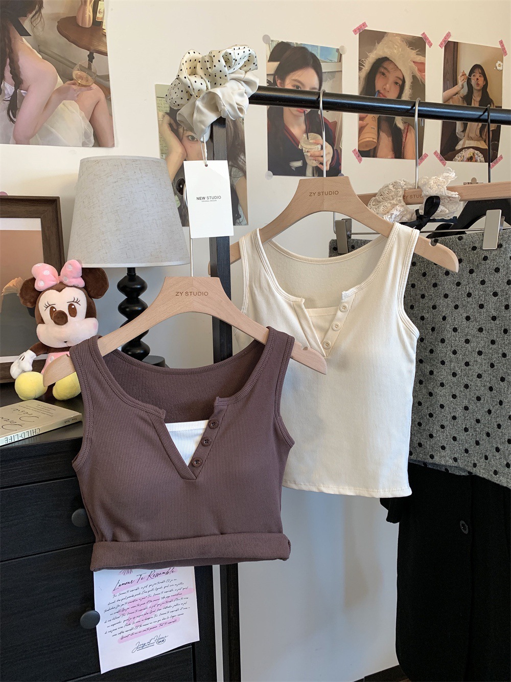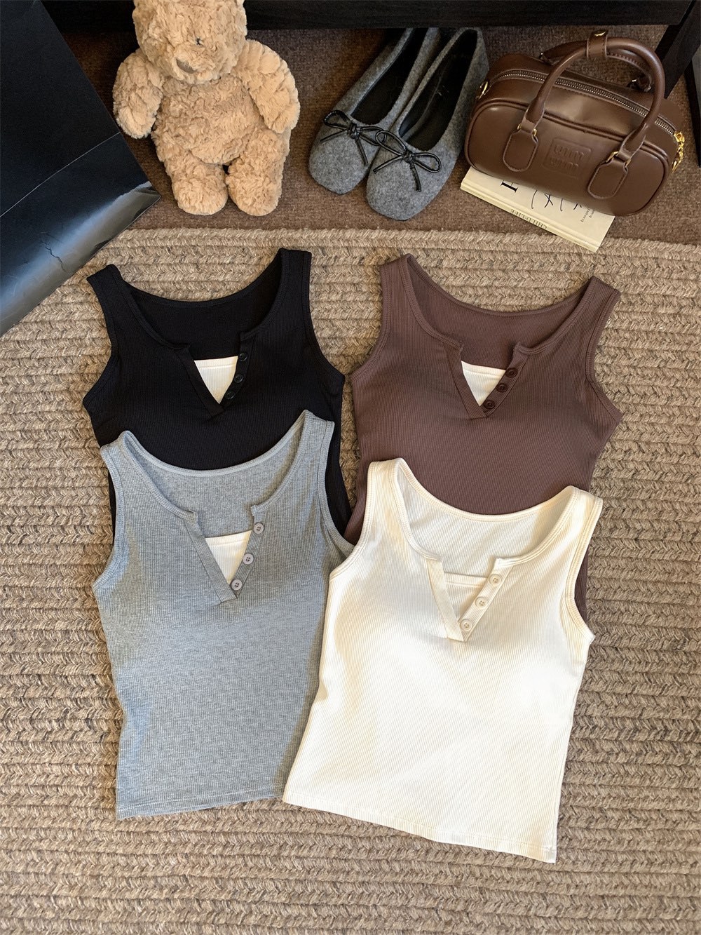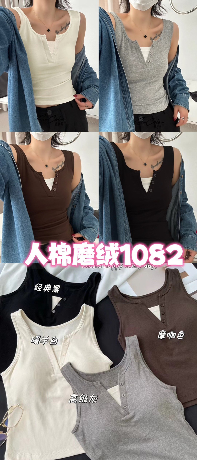 서양식 스퀘어 칼라 가짜 투피스 콘트라스트 컬러 샌딩 따뜻한 조끼 가슴 패드 편안한 슬리밍 올매치 베이스 내부스토어 가기