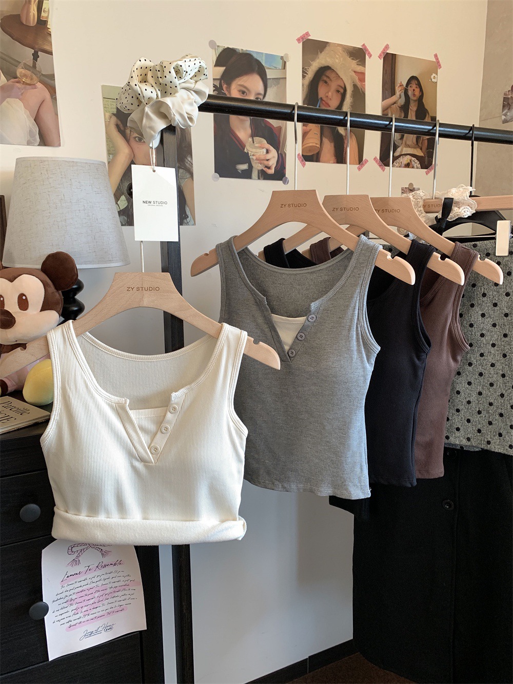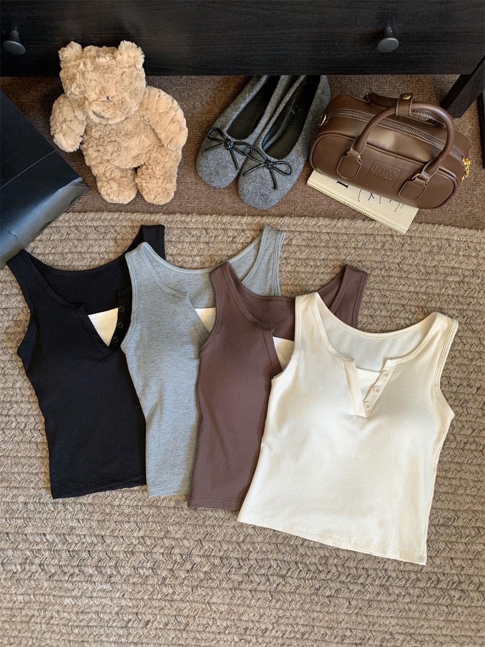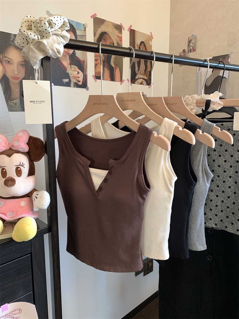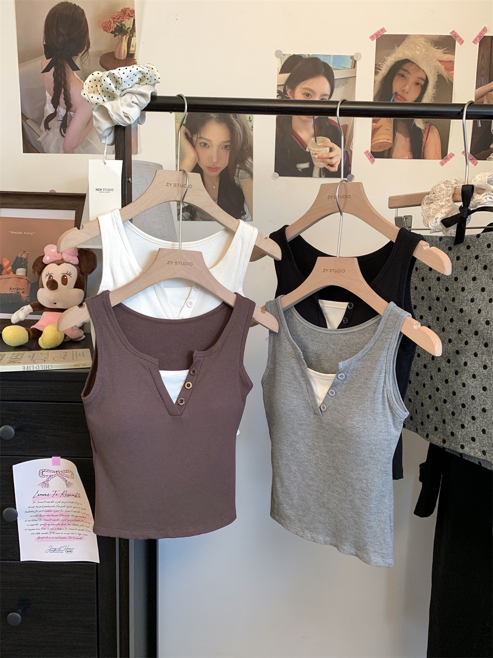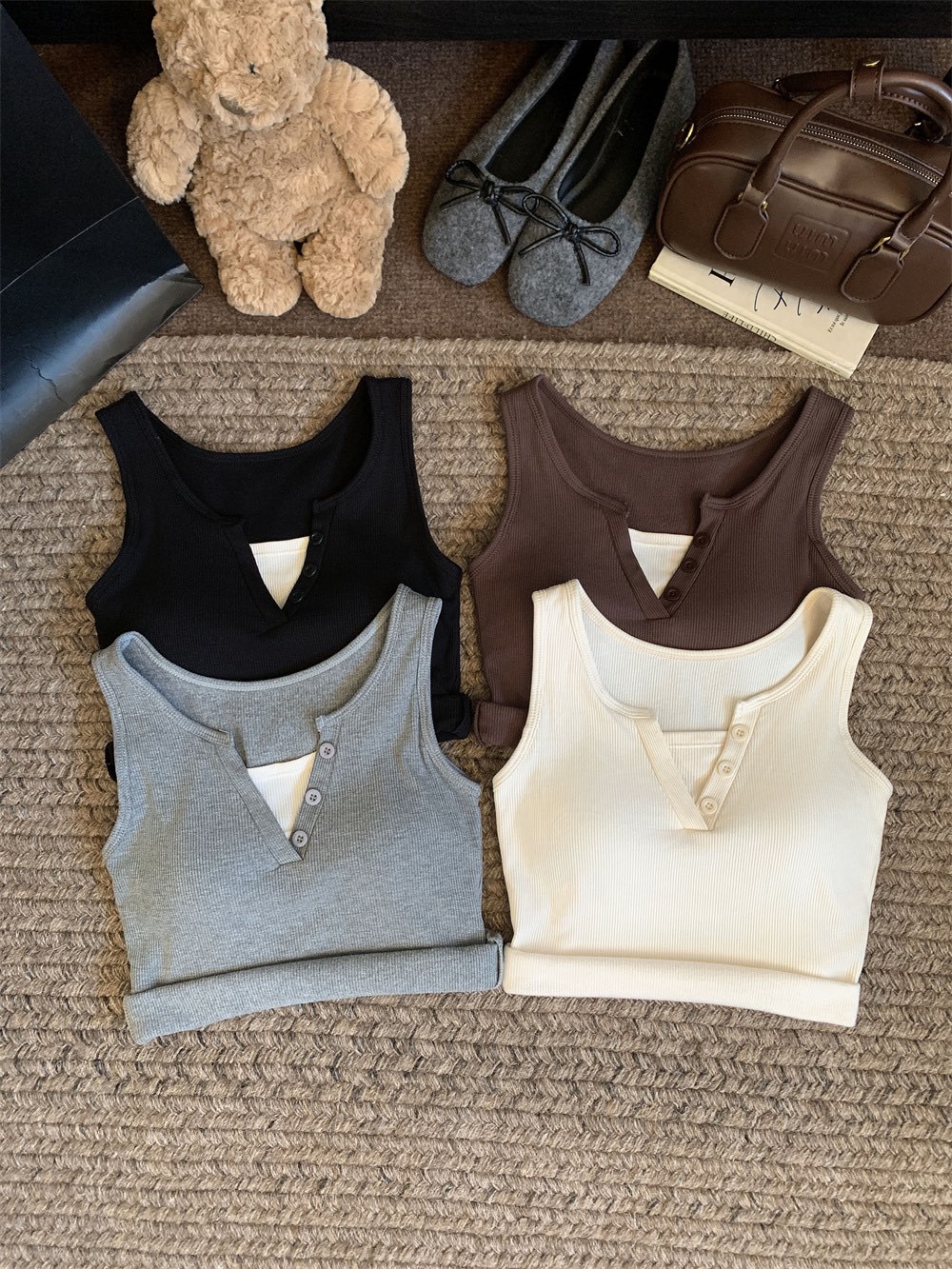 서양식 스퀘어 칼라 가짜 투피스 콘트라스트 컬러 샌딩 따뜻한 조끼 가슴 패드 편안한 슬리밍 올매치 베이스 내부스토어 가기
