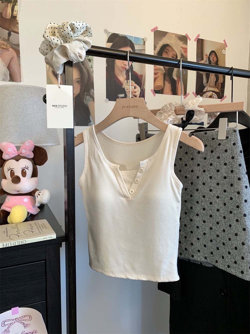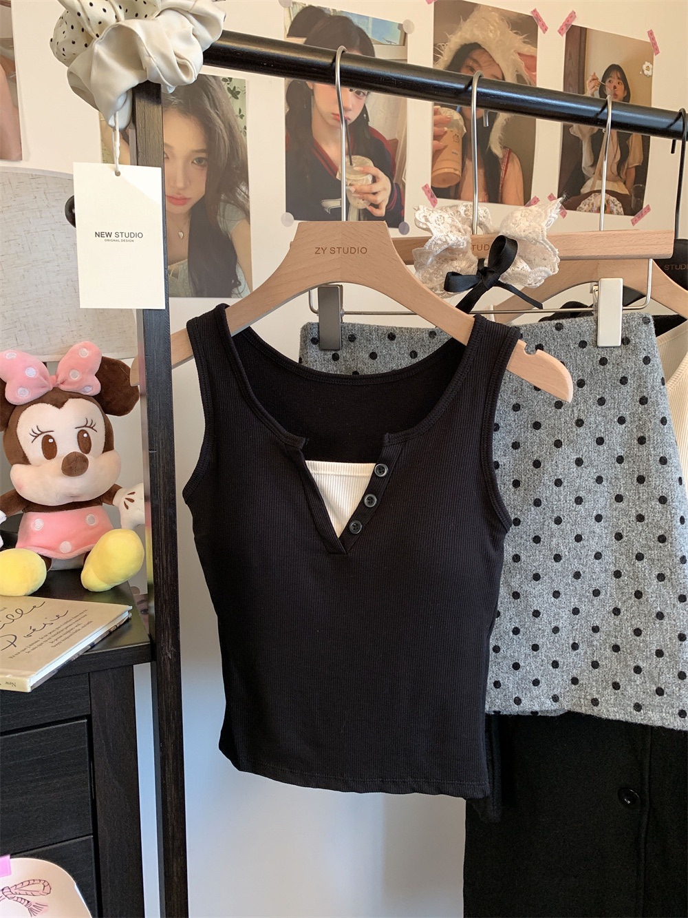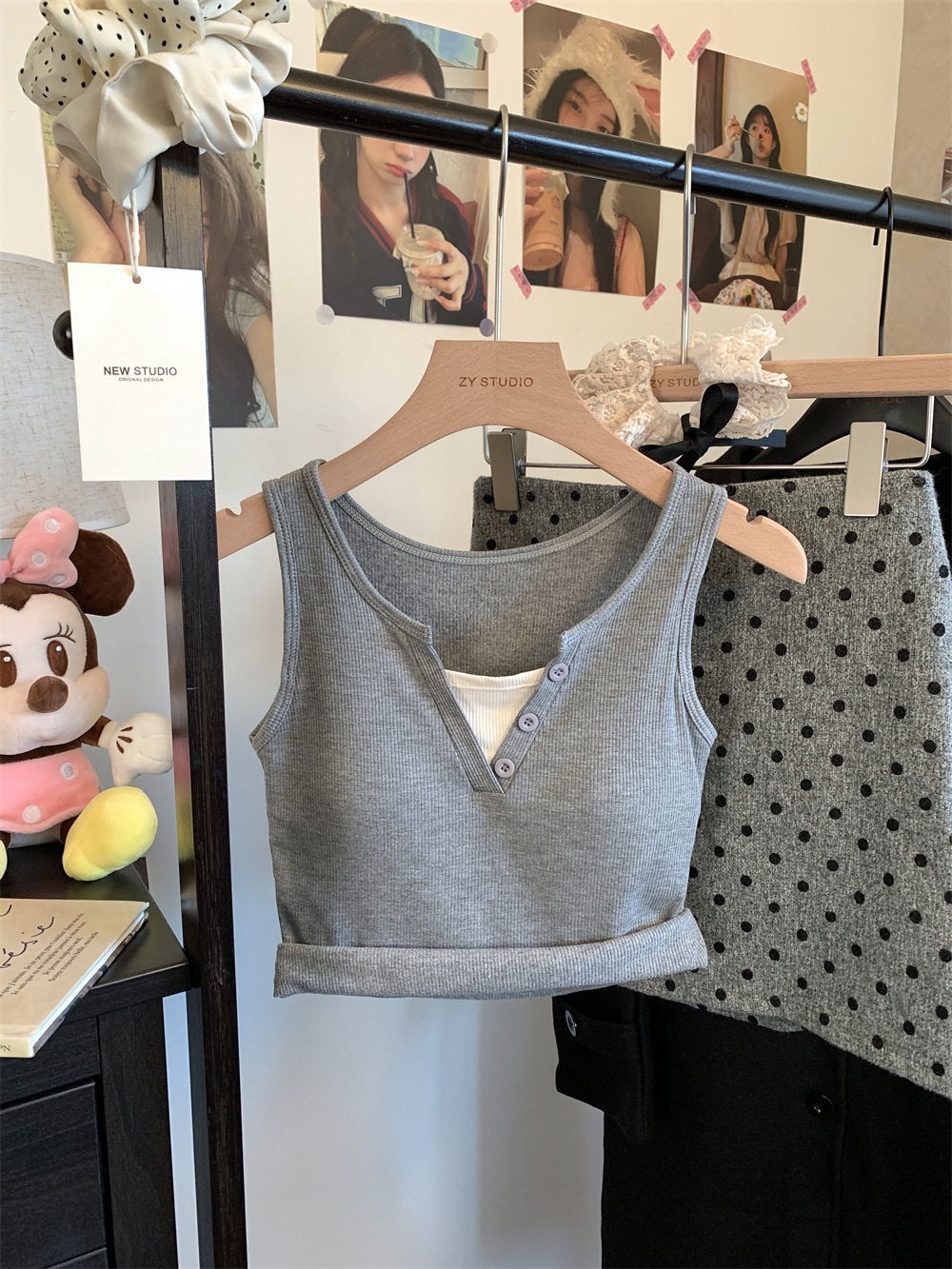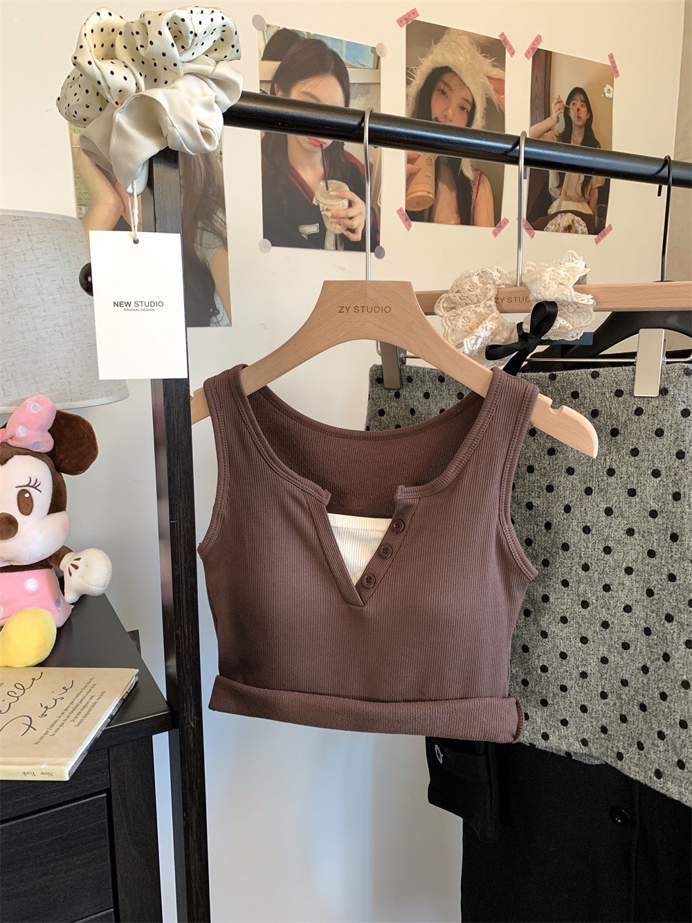 서양식 스퀘어 칼라 가짜 투피스 콘트라스트 컬러 샌딩 따뜻한 조끼 가슴 패드 편안한 슬리밍 올매치 베이스 내부