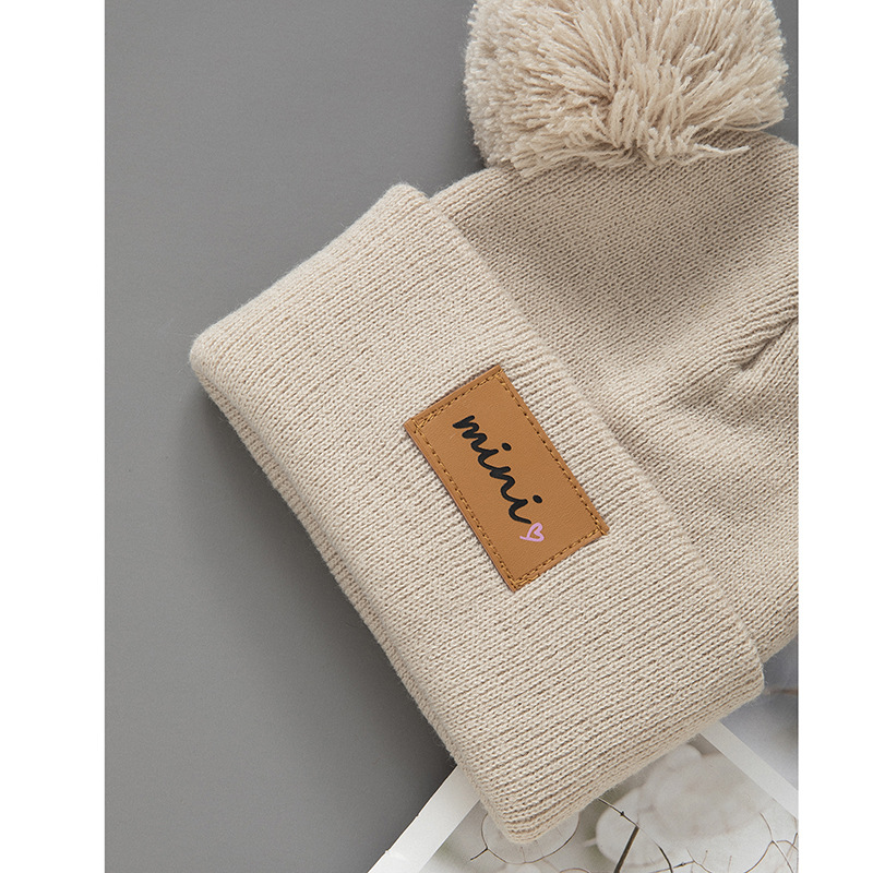 가을과 겨울 새로운 소년 캐주얼 어린이 울 모자 트렌디 한 봉제 가죽 라벨 니트 모자 귀여운 아기 모자