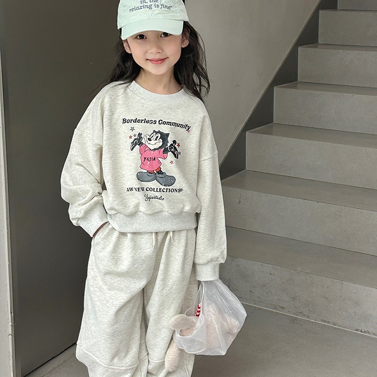 소녀 코트 봄과 가을 2024 새로운 서양 스타일 어린이 가을 후드 스웨트 셔츠 투피스 세트 어린 소녀 가을스토어 가기