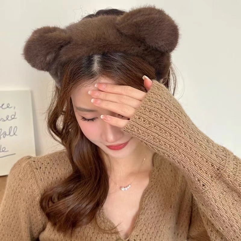 새로운 슈퍼 귀여운 마오 마오 헤어 클립 원래 디자인 얼굴 씻기 헤어 후프 진짜 밍크 모피 고양이 귀 그물 빨간 머리 클립스토어 가기
