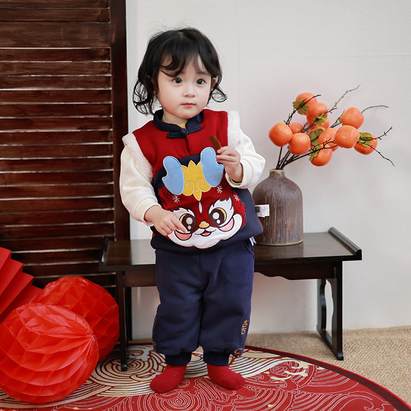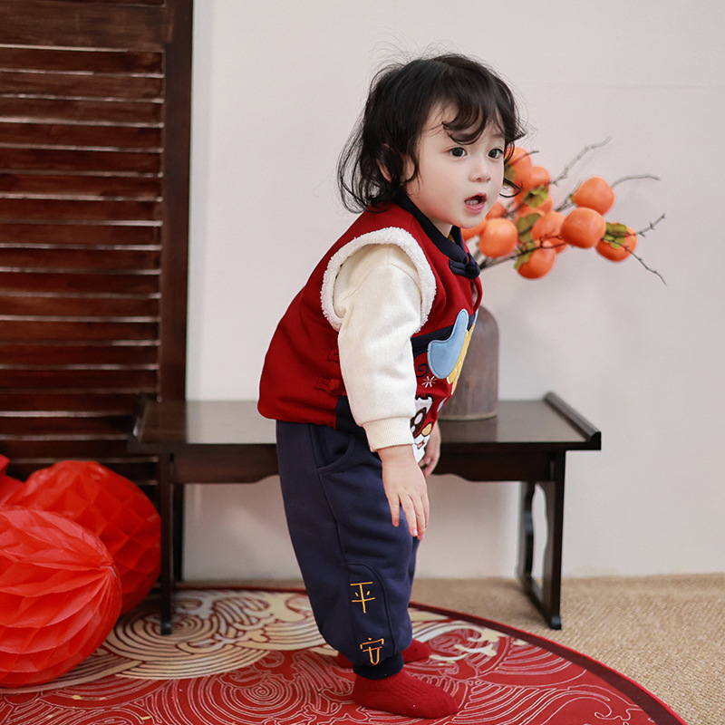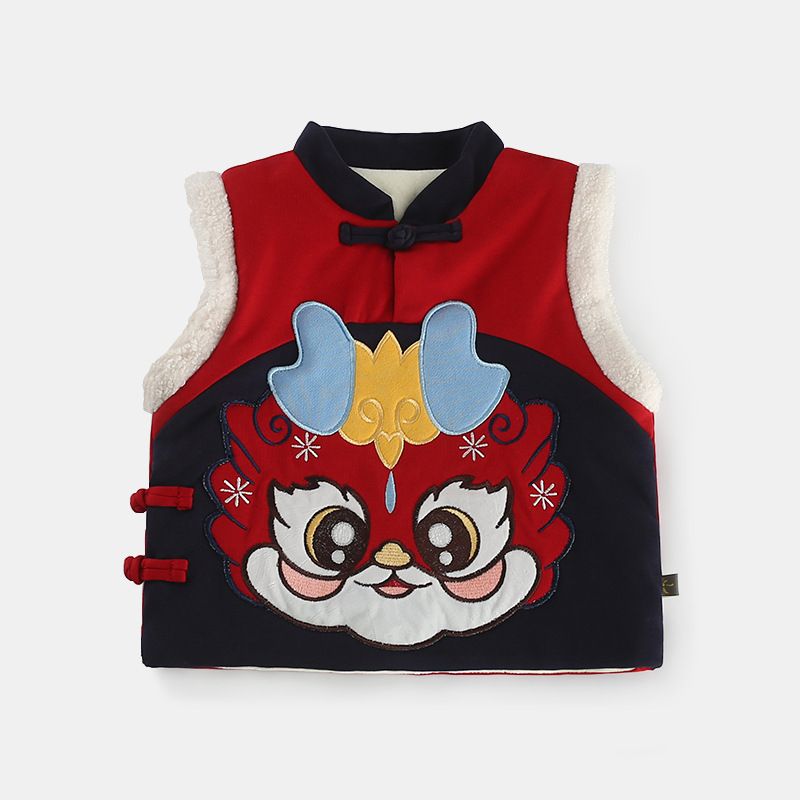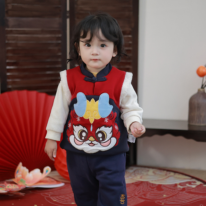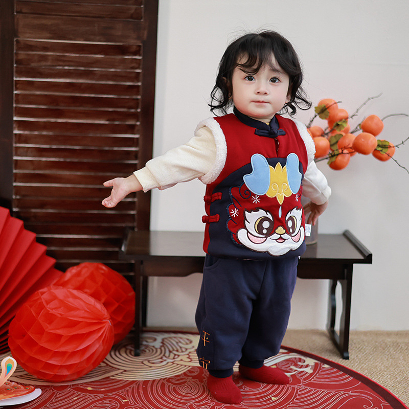 어린이 따뜻한 조끼 겨울 새 기모 조끼 중국 스타일 외부 조끼 조끼 어린이 겨울 의류 신년 의류