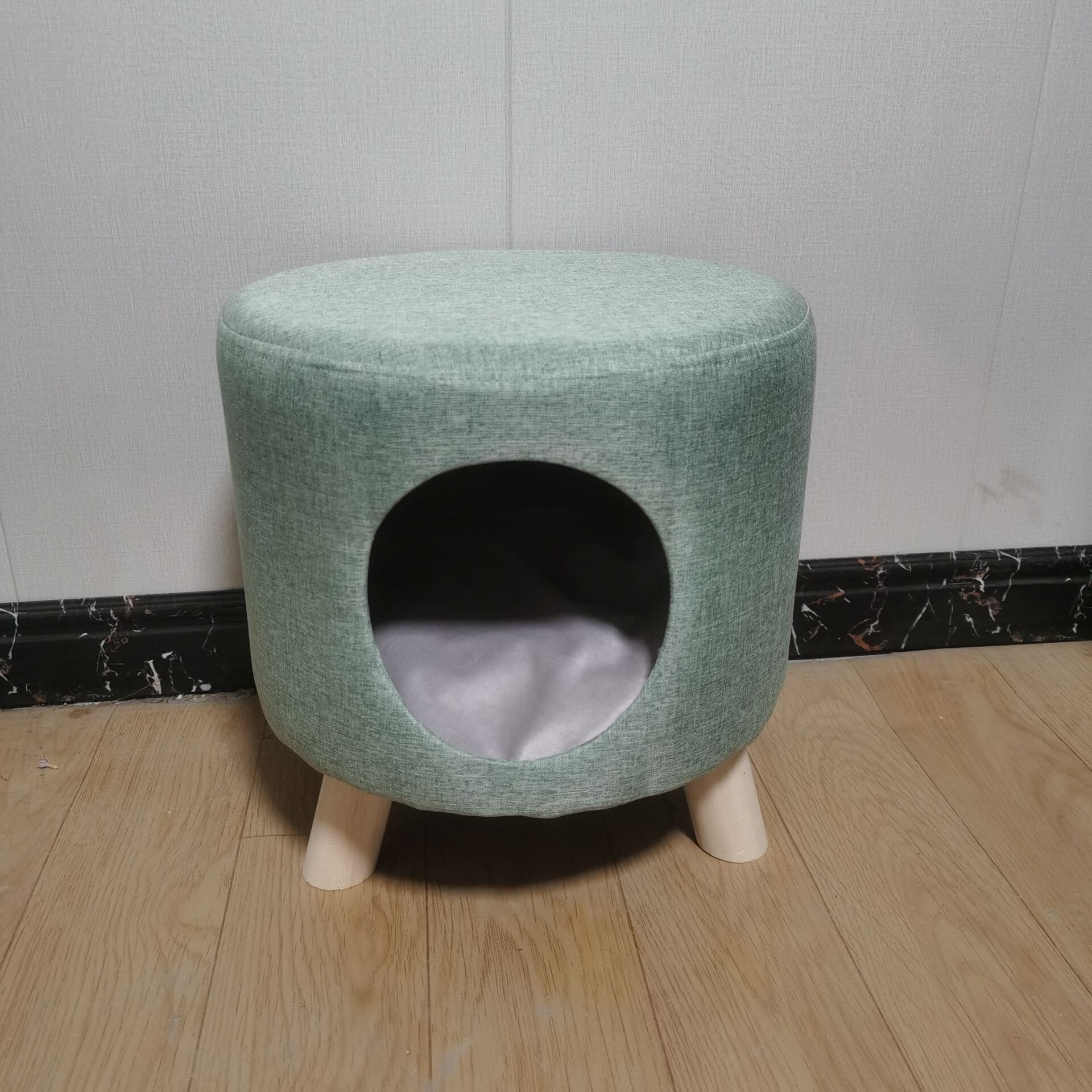 • 다리 달린 다크 그린 고양이 하우스⚑