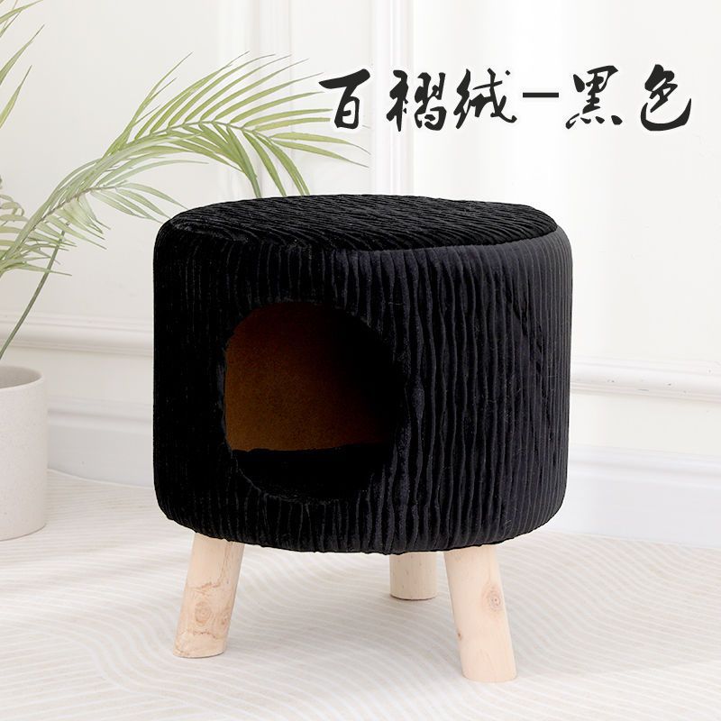겨울을위한 닫힌 고양이 둥지 따뜻한 사람과 고양이는 고양이가 잠을 자기위한 둥지를 공유합니다. 따뜻한 사계절 레이 레드 나무 대변 고양이 둥지
