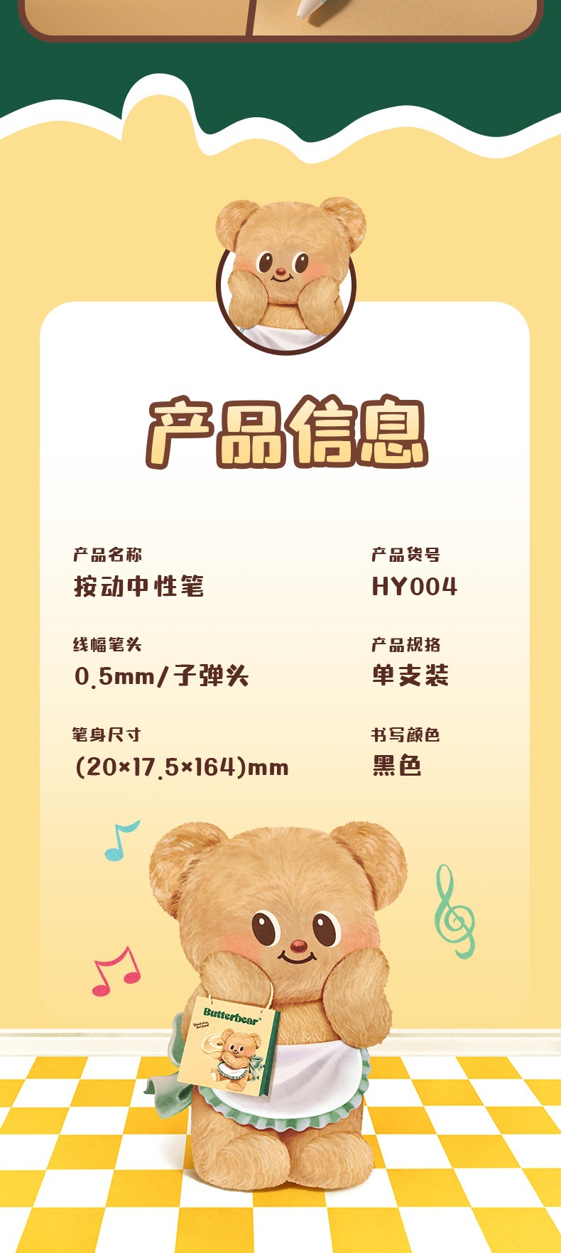 [싱글팩] 델리 버터베어 HY004 프레스 젤펜, 매끄러운 잉크, 고급스러운 매력스토어 가기
