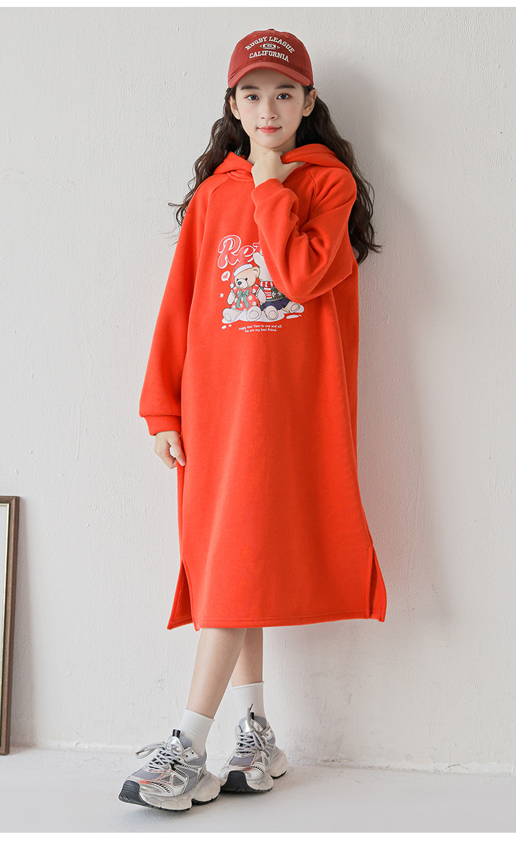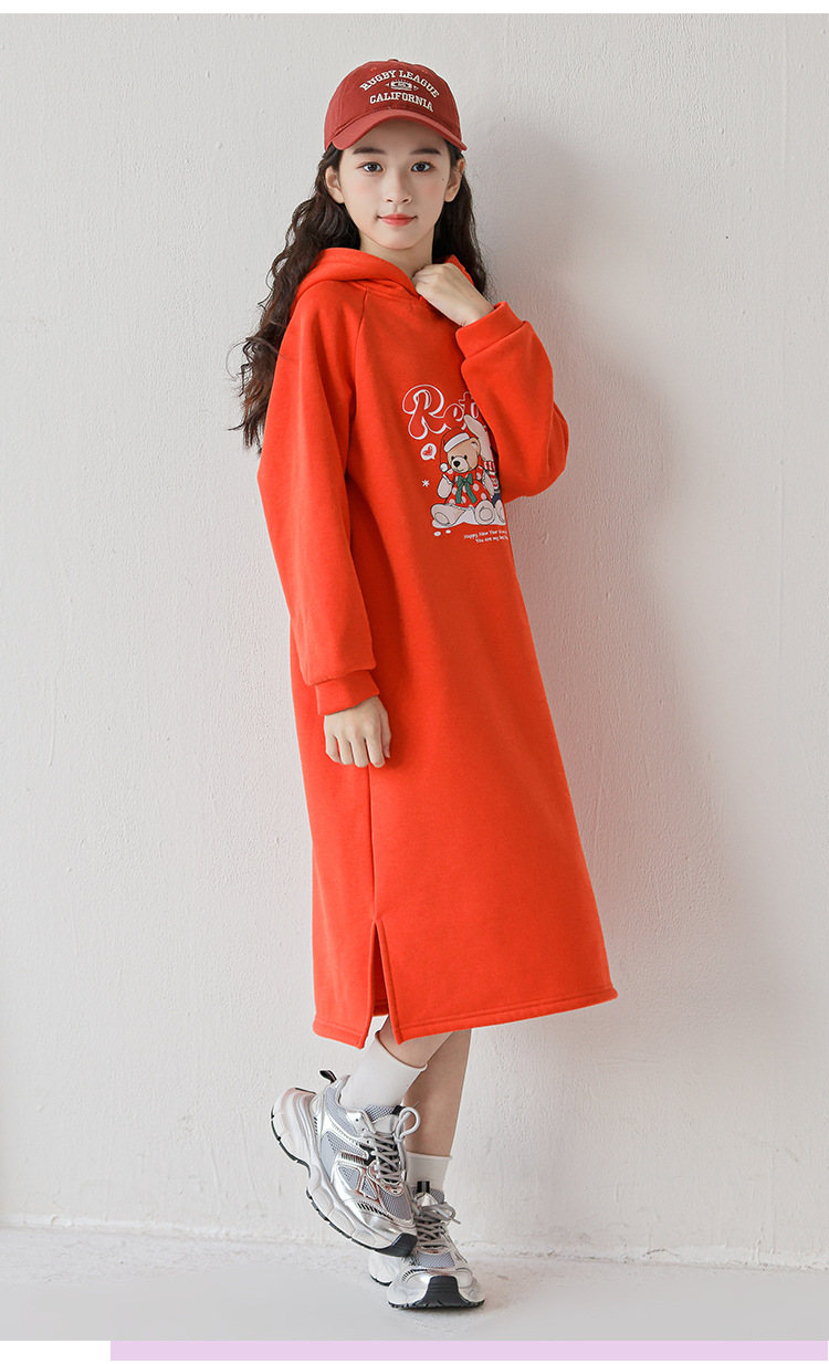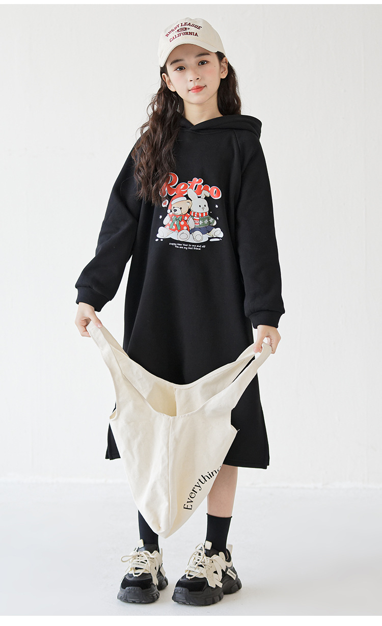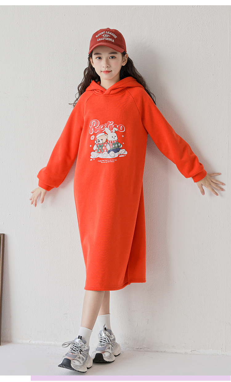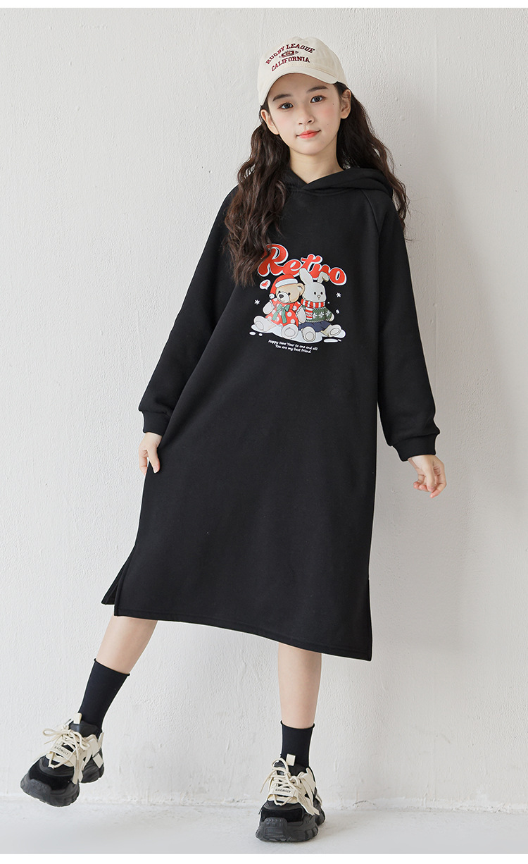 여자 기모 후드 원피스 2024 겨울 크리스마스 초등학교 중학교 학생 두꺼운 따뜻한 만화 원피스
