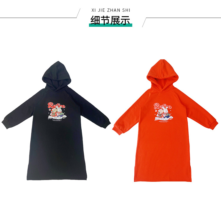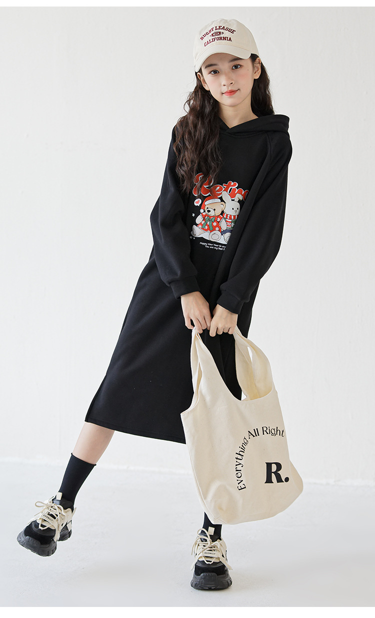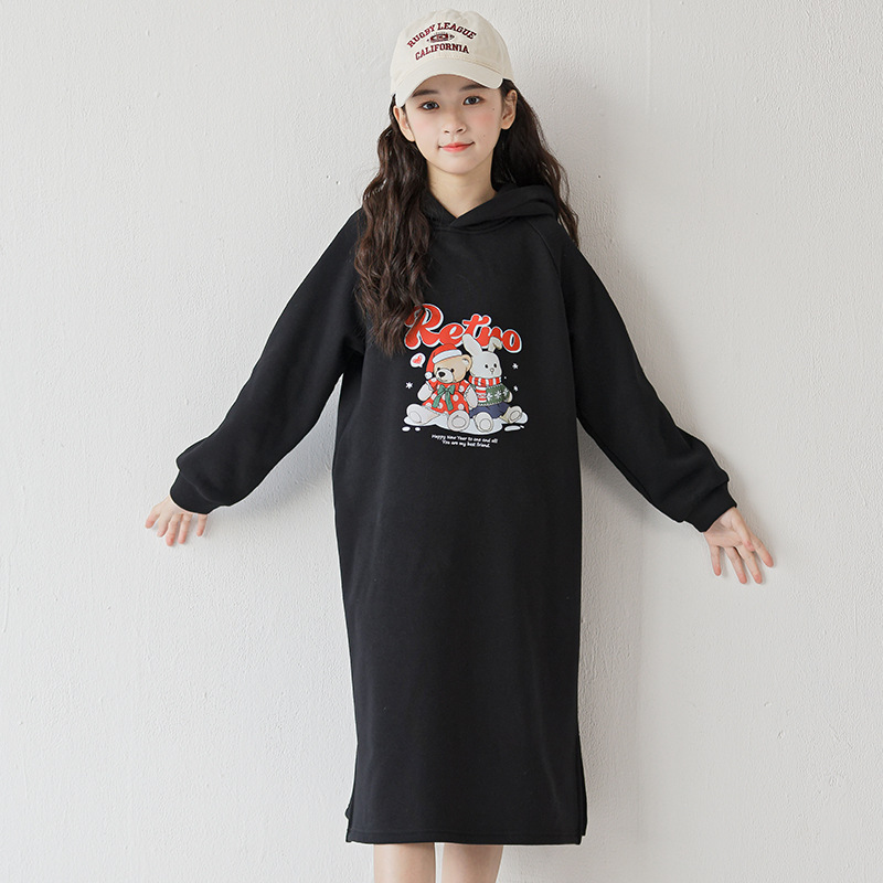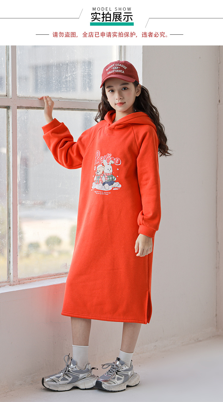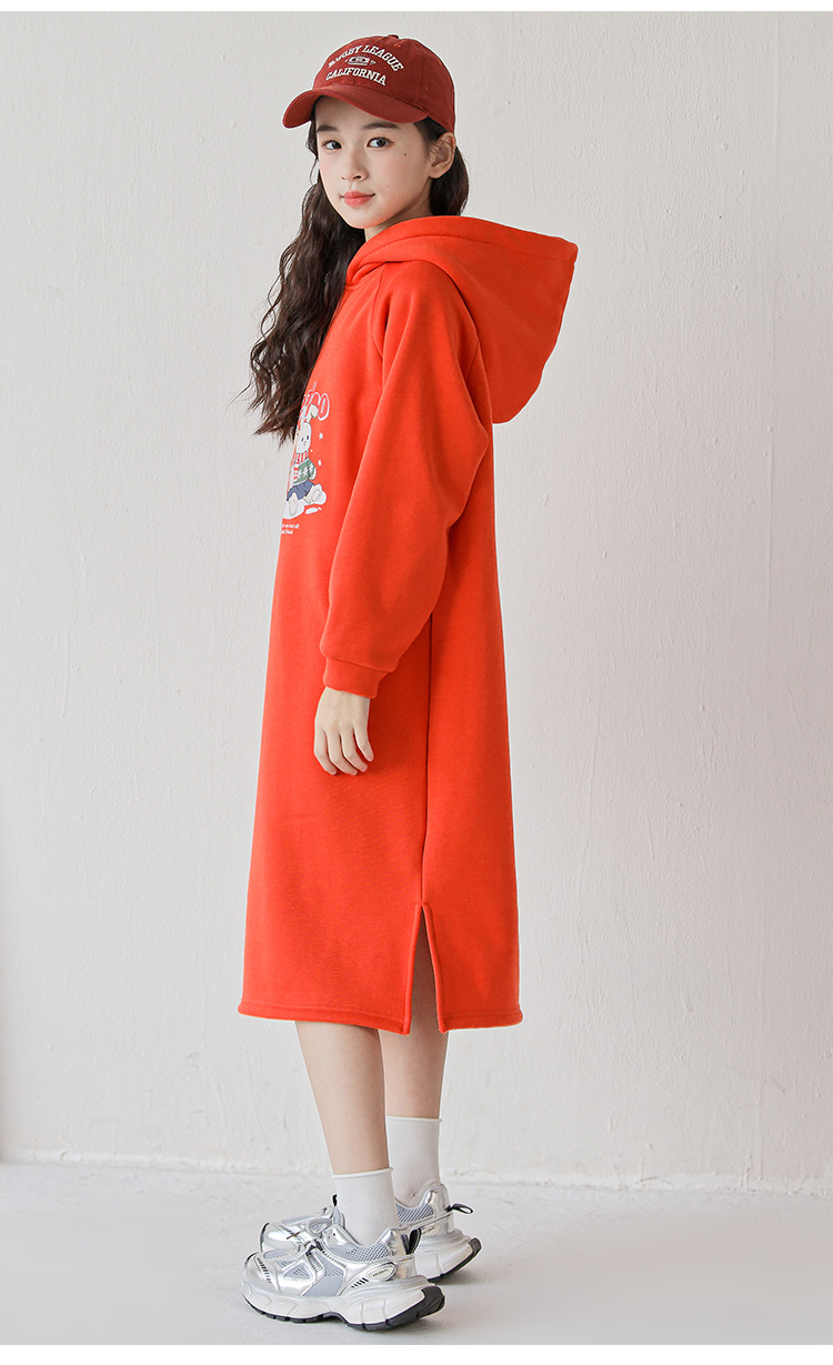 여자 기모 후드 원피스 2024 겨울 크리스마스 초등학교 중학교 학생 두꺼운 따뜻한 만화 원피스