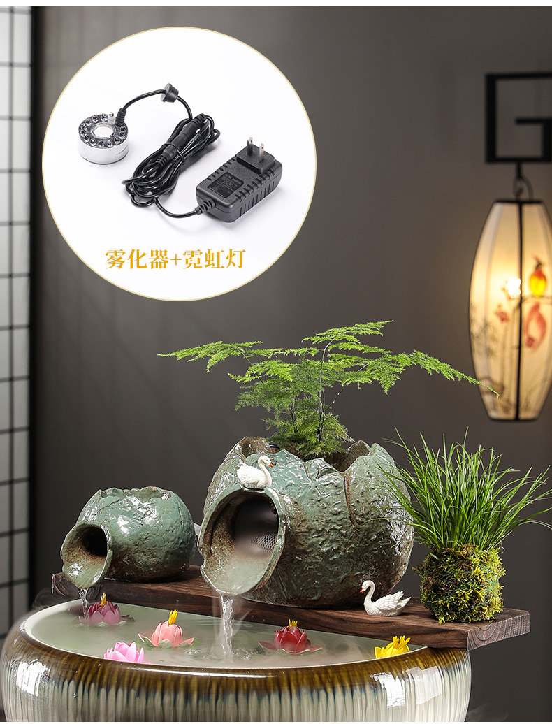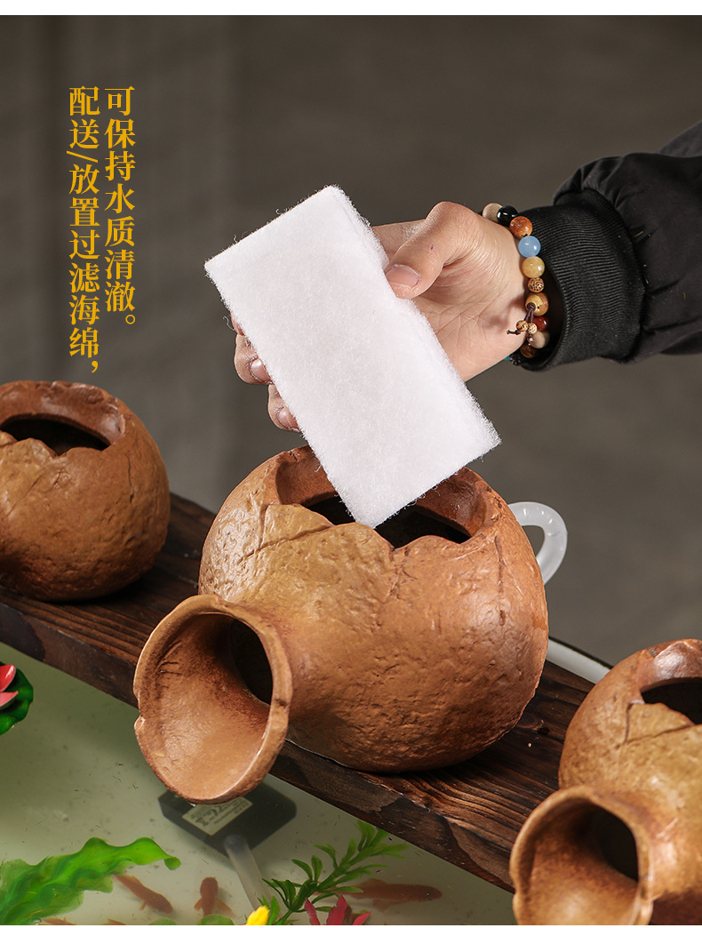 실행 물 장식품 고대 방법 물고기 탱크 생태 탱크 실행 물 입 산소 증가 필터 도자기 냄비 상단 부품 분수 장식 액세서리스토어 가기