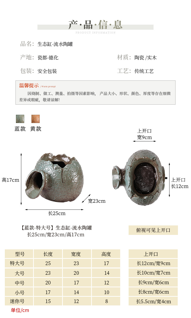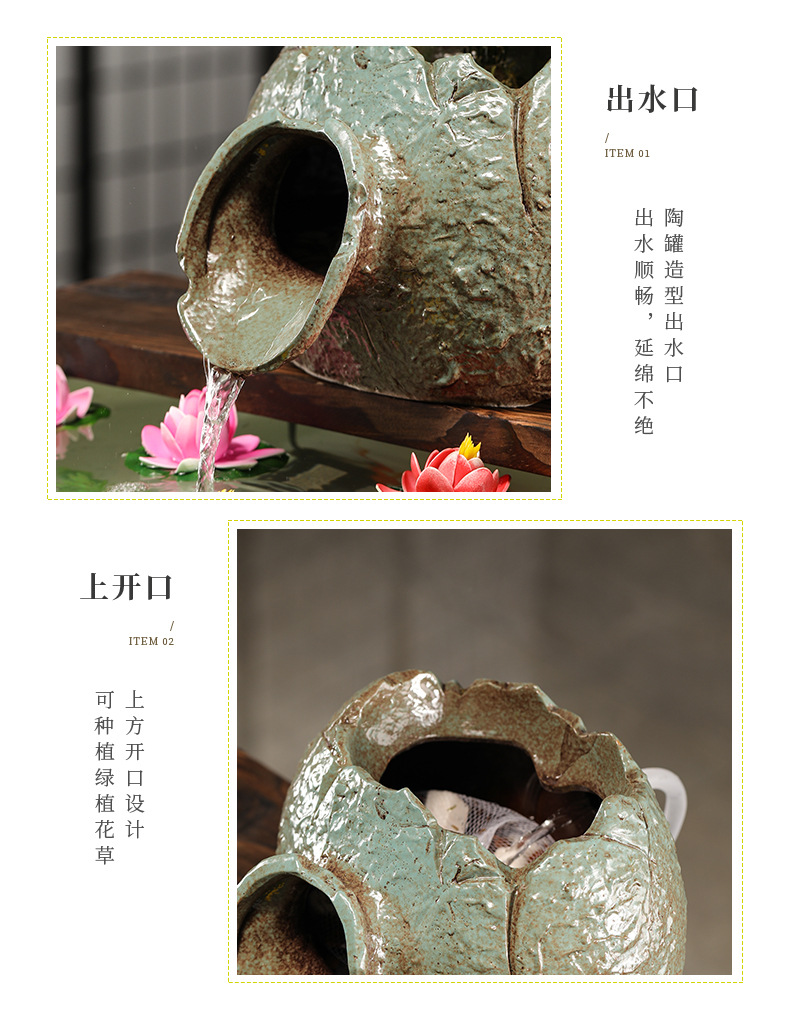 실행 물 장식품 고대 방법 물고기 탱크 생태 탱크 실행 물 입 산소 증가 필터 도자기 냄비 상단 부품 분수 장식 액세서리