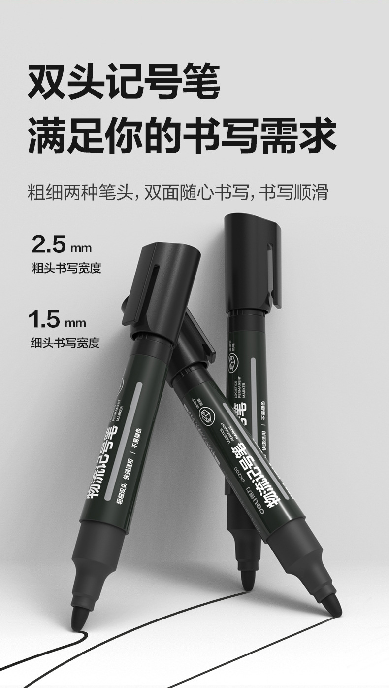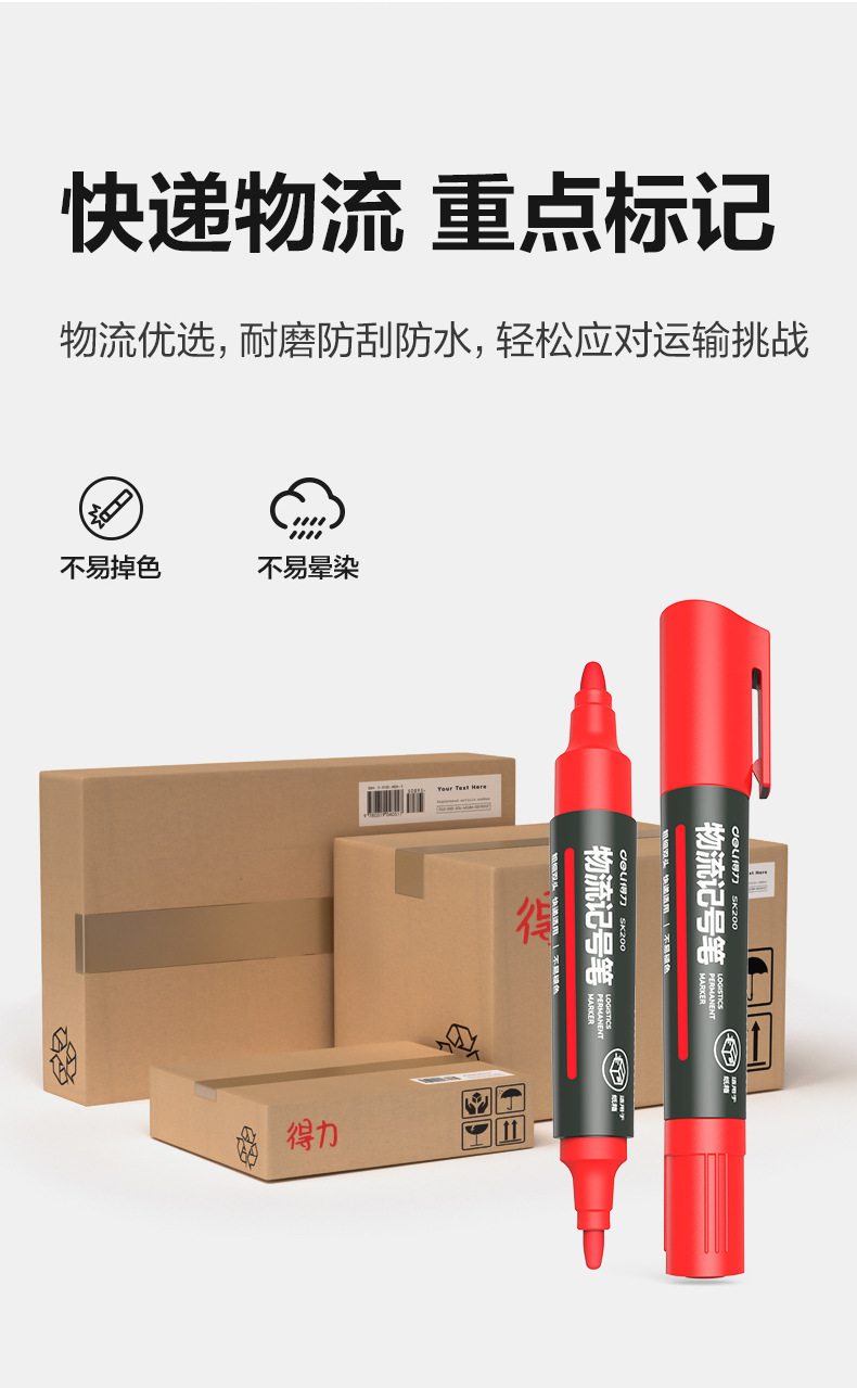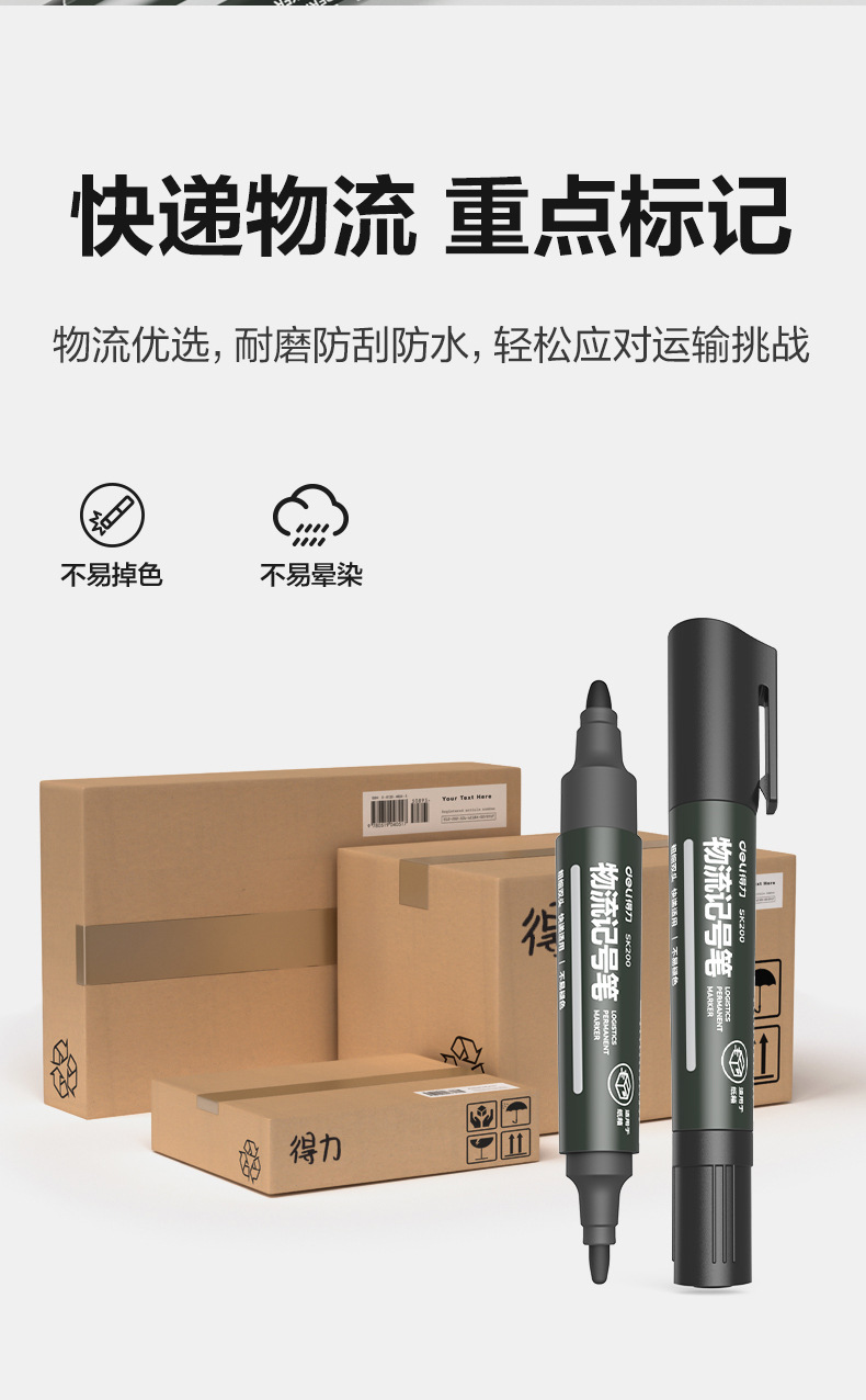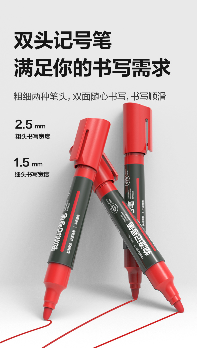 델리 마커 SK200 양두 마커 대용량 빠른 건조 유성 방수 내마모성 두께 두 펜 팁