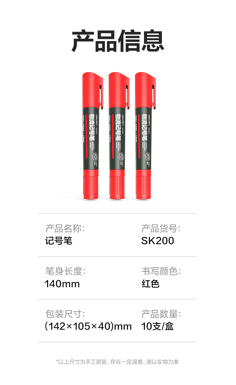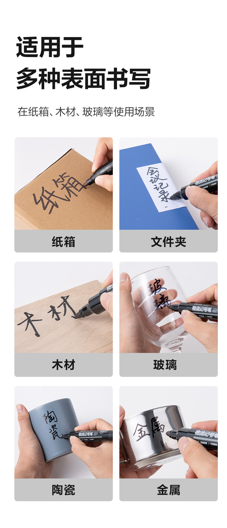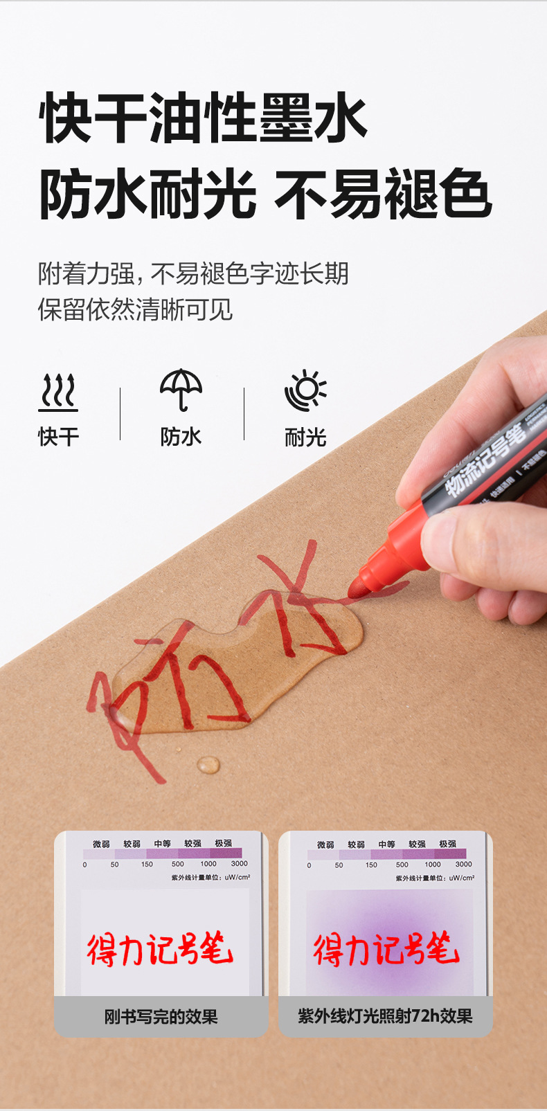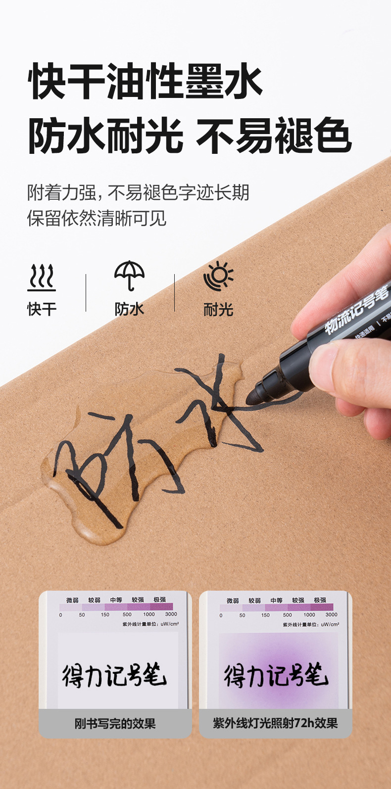 델리 마커 SK200 양두 마커 대용량 빠른 건조 유성 방수 내마모성 두께 두 펜 팁