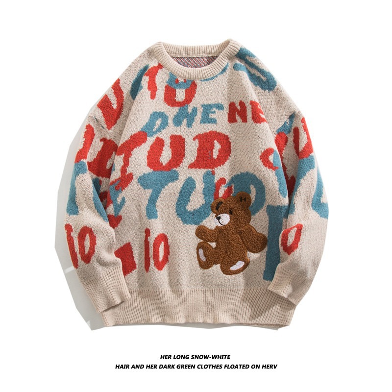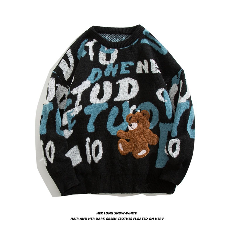 일본 스타일 골동품 특대 곰 스웨터 남자의 가을과 겨울 느슨한 외부 착용 틈새 디자인 소프트 왁스 두꺼운 재킷스토어 가기