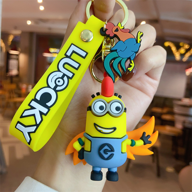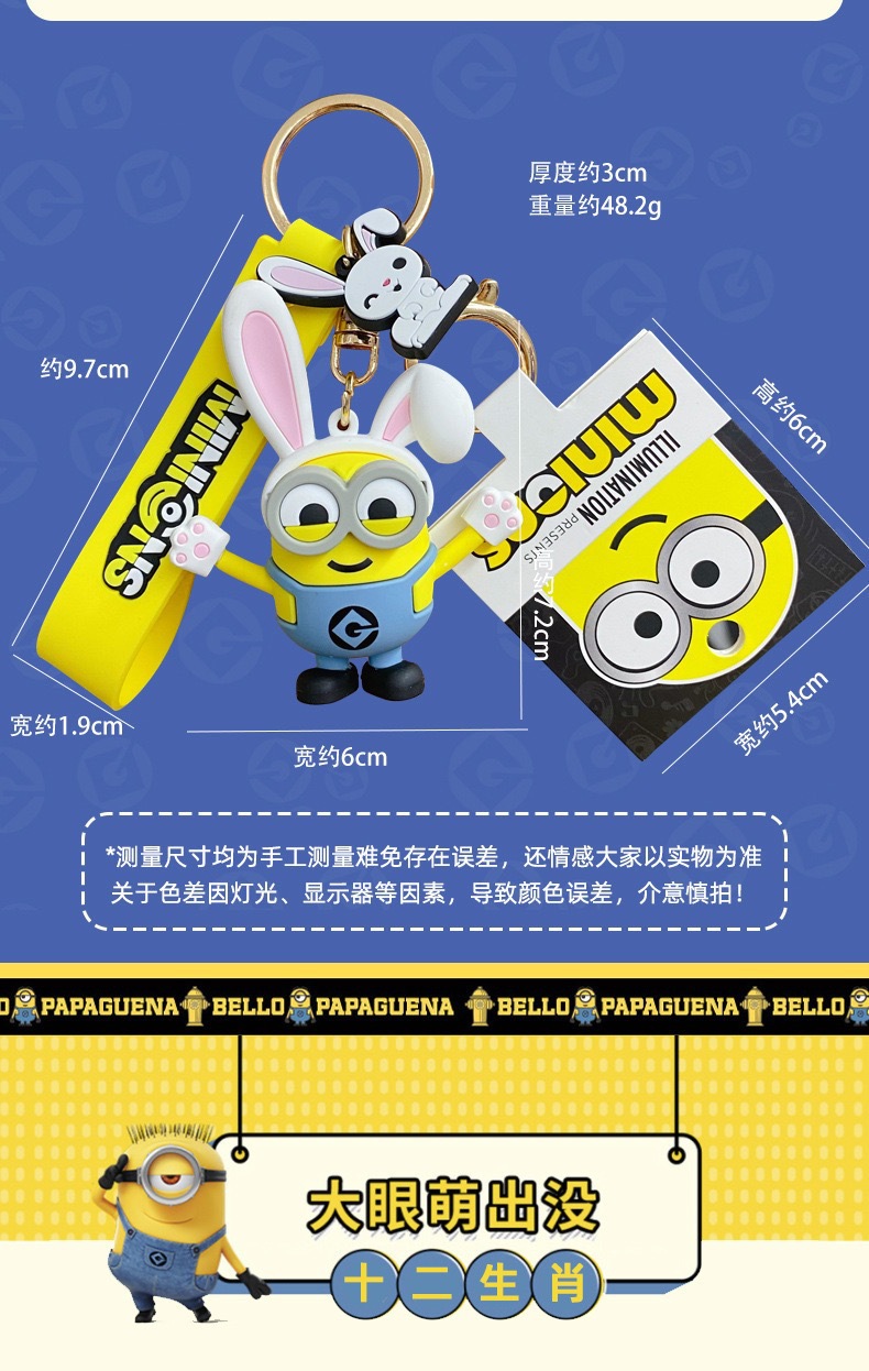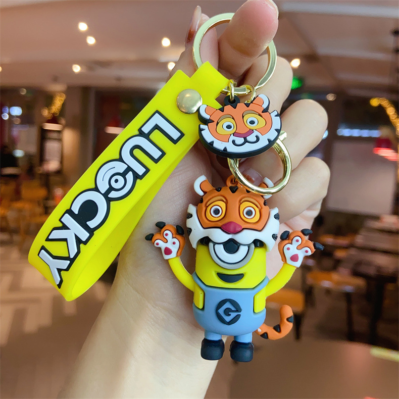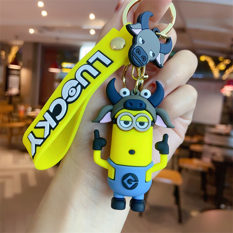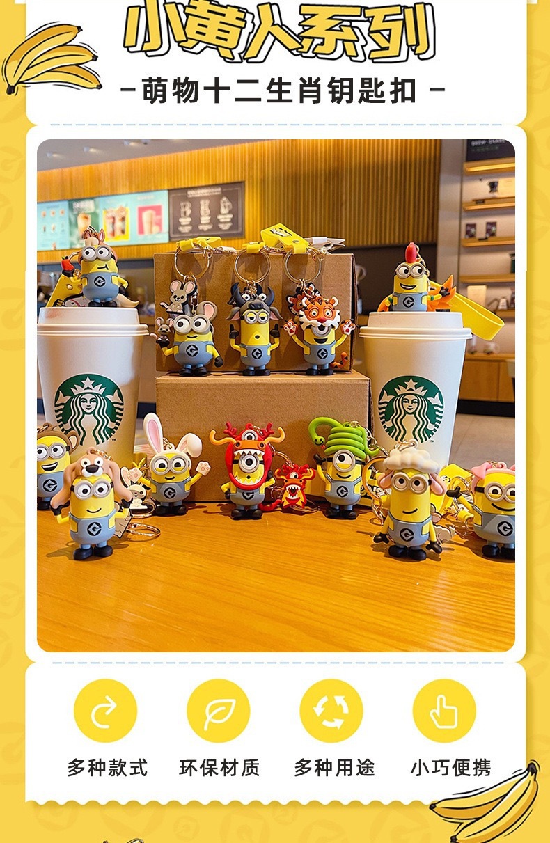 국경 만화 귀여운 작은 노란색 키 체인 12 조디악 인형 고무 자동차 키 체인 펜던트 도매