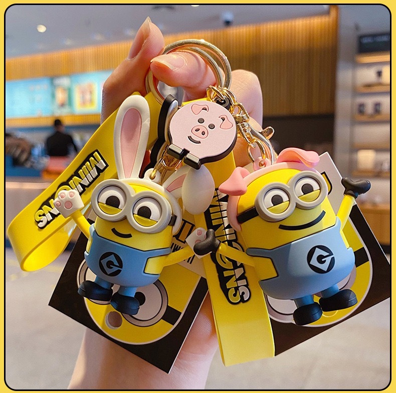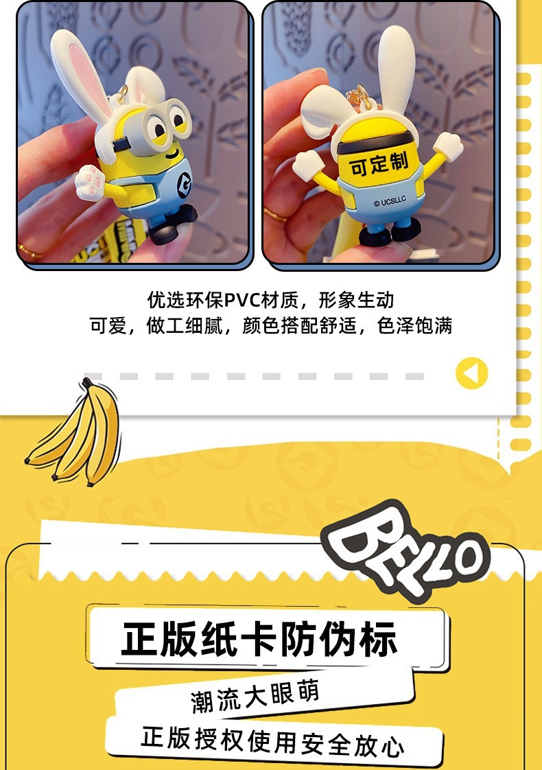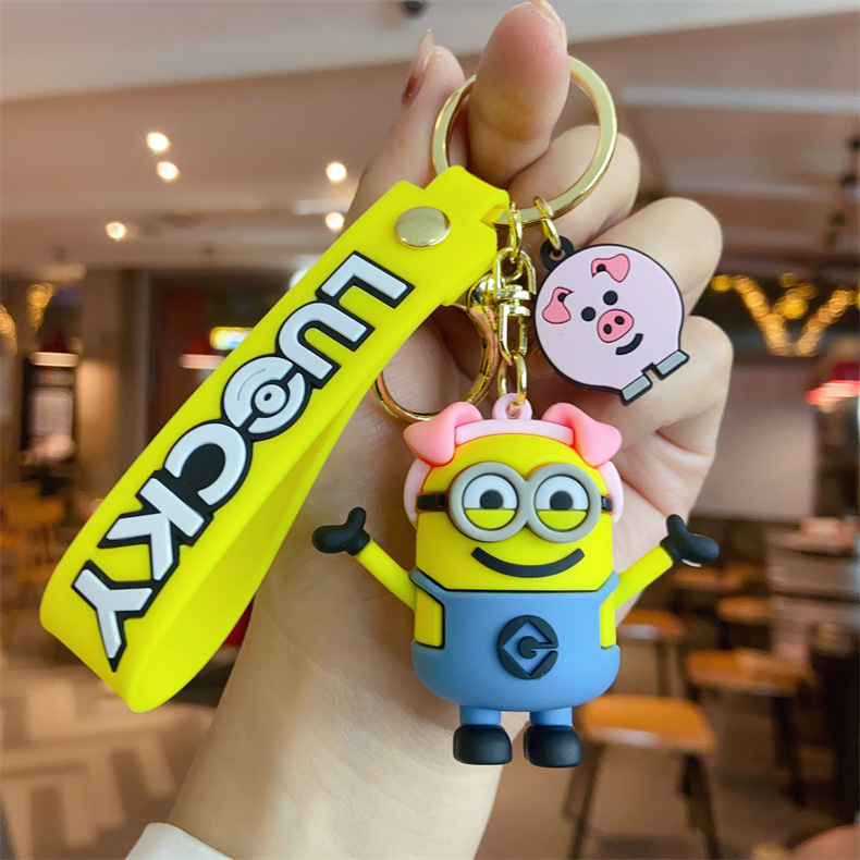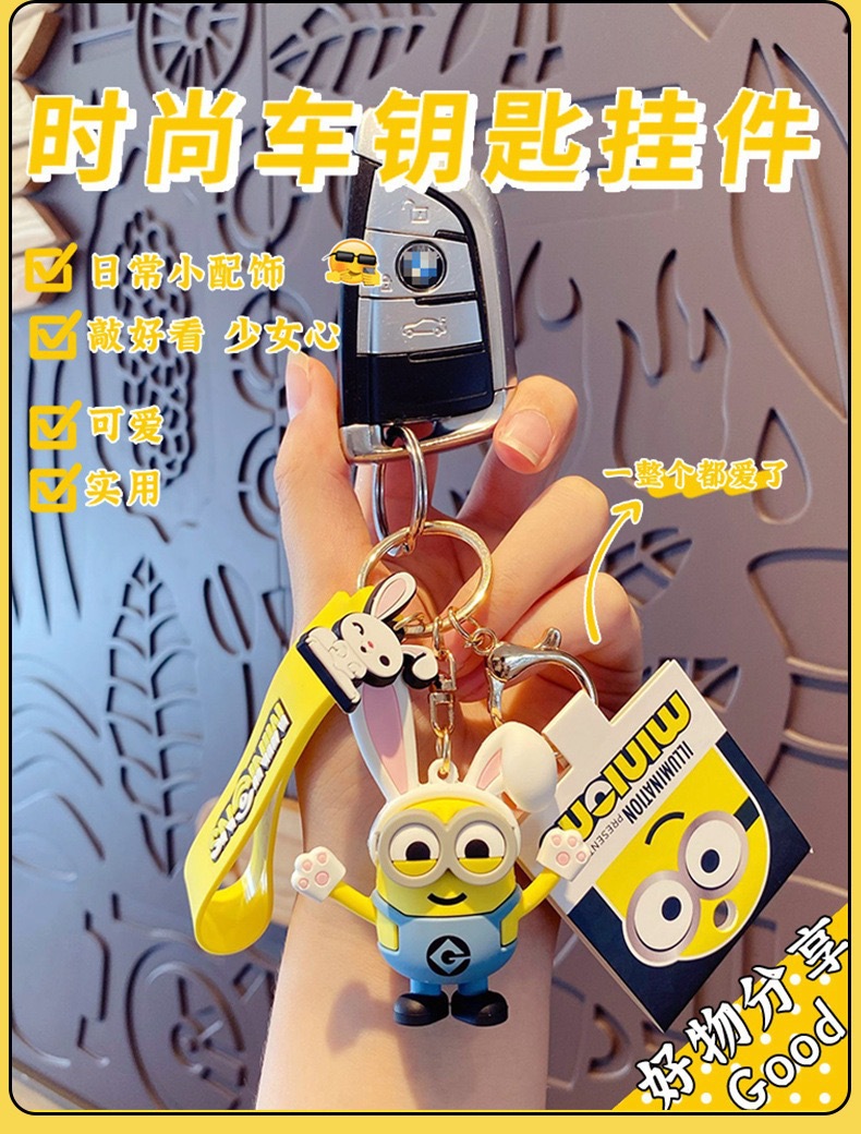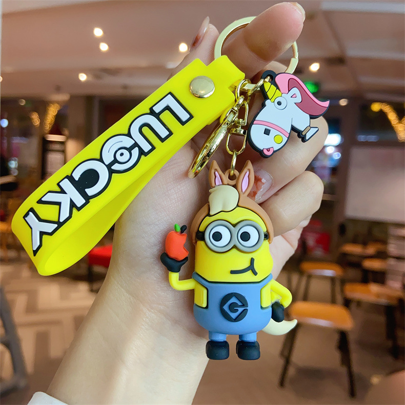 국경 만화 귀여운 작은 노란색 키 체인 12 조디악 인형 고무 자동차 키 체인 펜던트 도매
