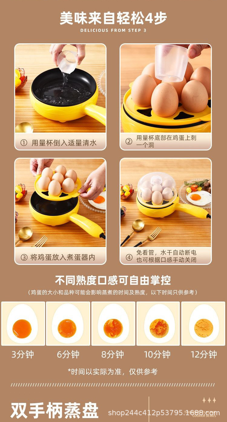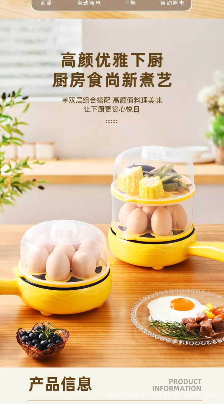 LAZADA 국경 도매 미니 전기 계란 튀김 팬 다기능 계란 끓이기 계란 끓는 유물 계란 끓는 기계 3 층 찐 계란