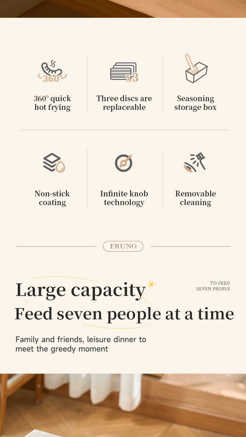 • 소시지 그릴 6개(본체에는 그릴 + 오일 트레이 + 프라이팬이 장착되어 있음)