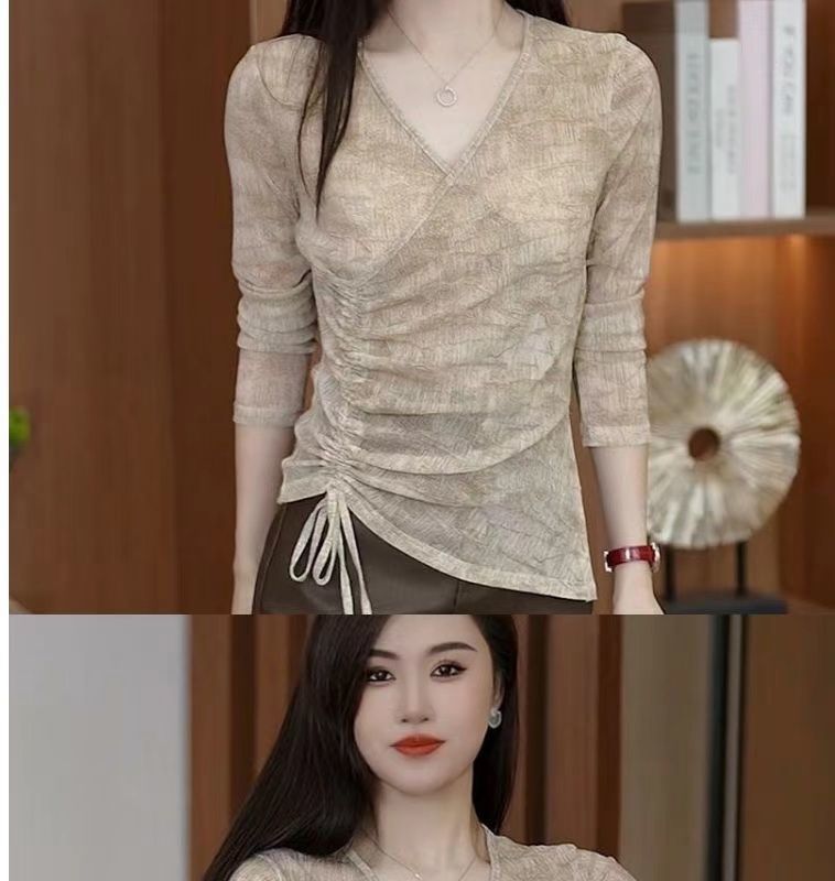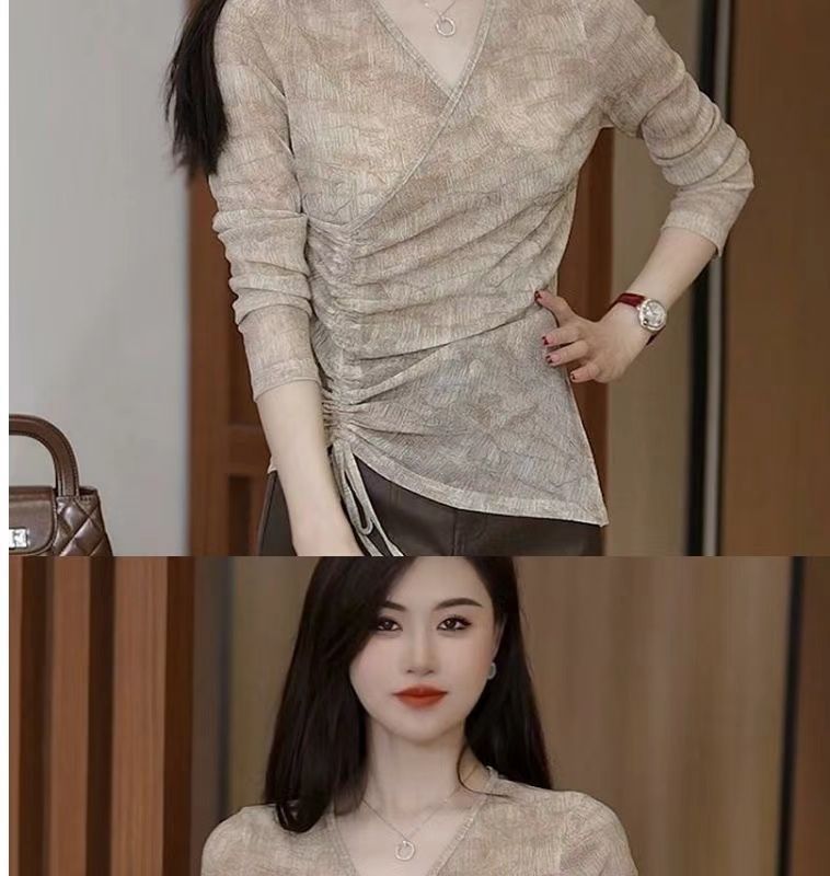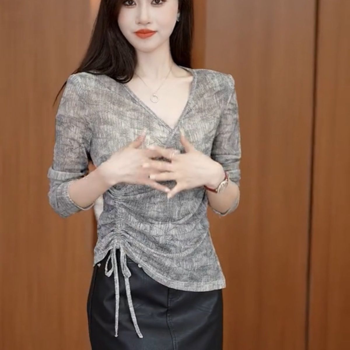 티셔츠 크로스 2024 가을 새로운 고급 허리 슬리밍 연령 감소 드로우 스트링 올 매치 아름다운 디자인 슬림 핏 탑스토어 가기