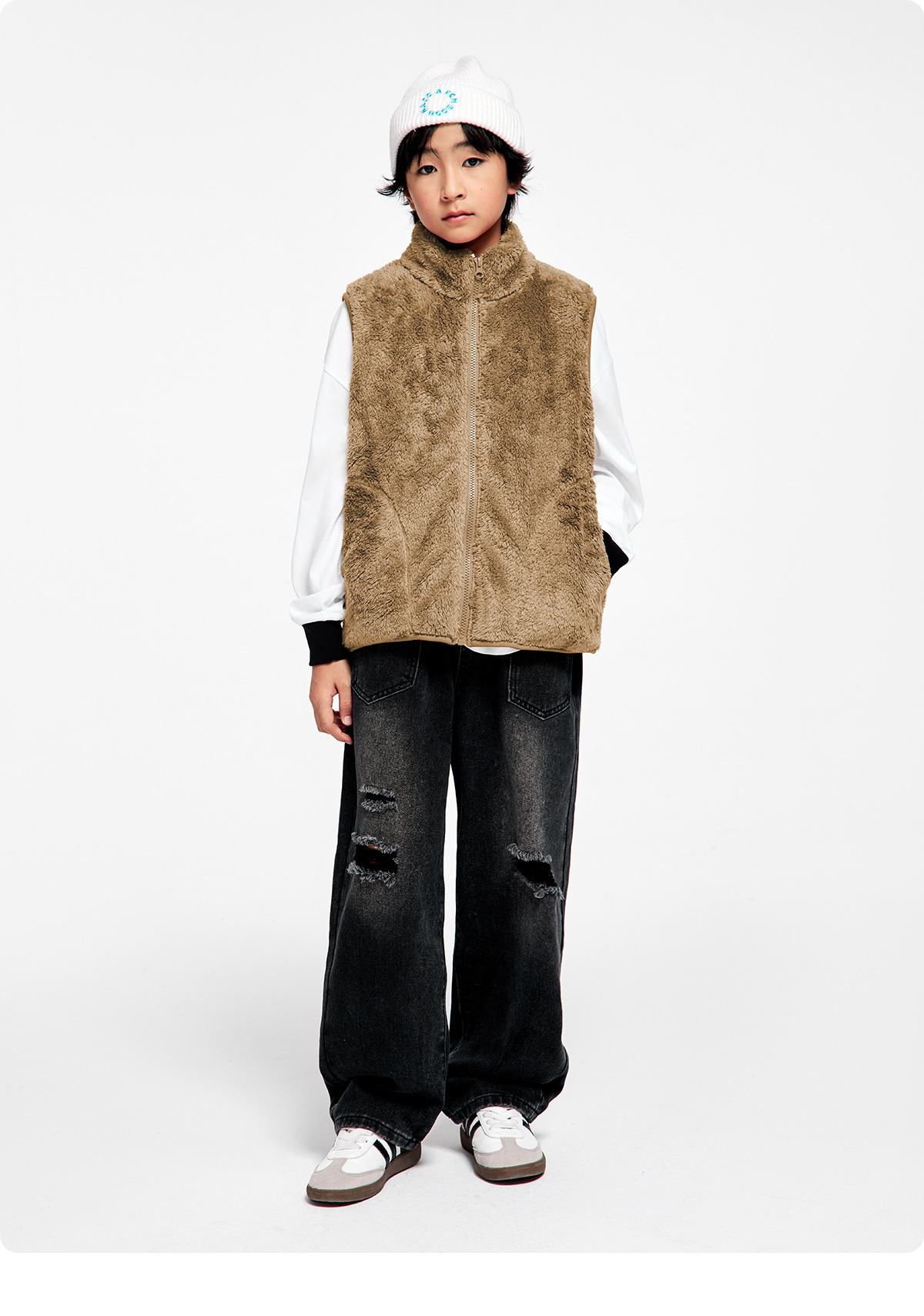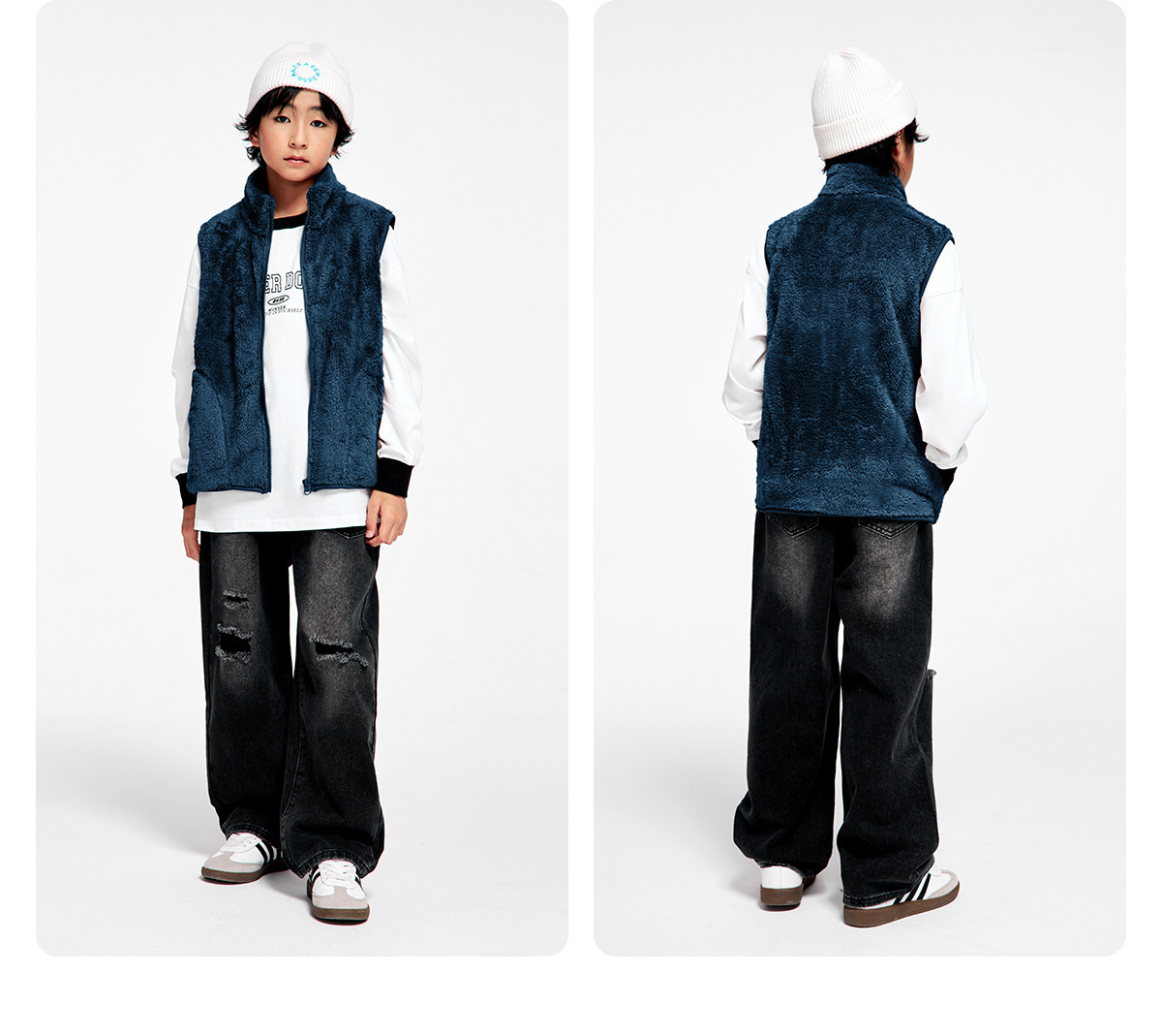 DK 아동복 가을 겨울 U가족 산호벨벳 플러스 벨벳 보온 조끼 교복 아이템 아동 여아 남아 조끼 자켓스토어 가기