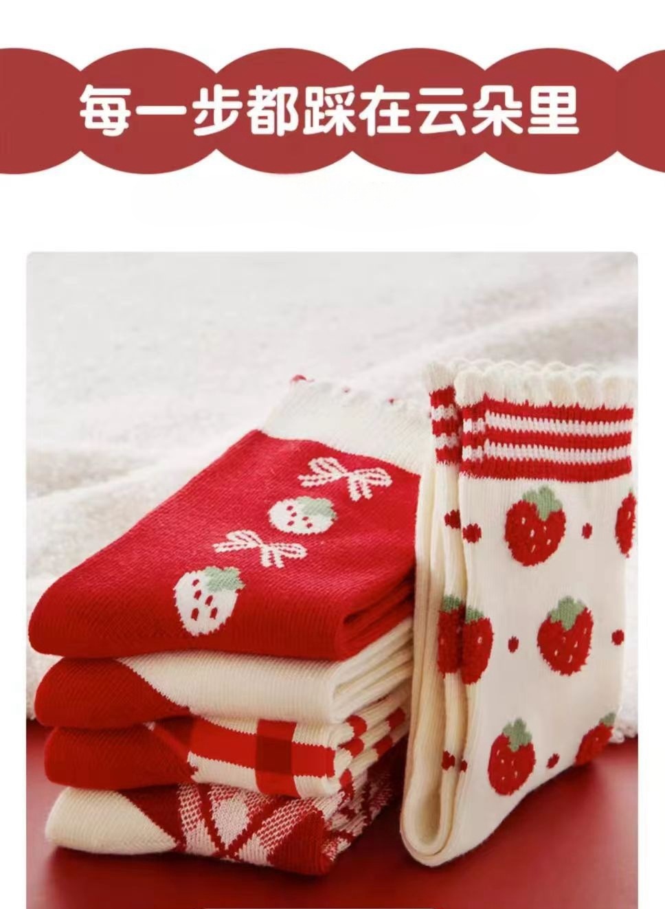 가을 겨울 아동 양말 빨간색 여자아이 중목 양말 딸기 무늬 아동 양말 여자아이 아기 양말 롱 양말 레이스 빨간 양말 도매스토어 가기